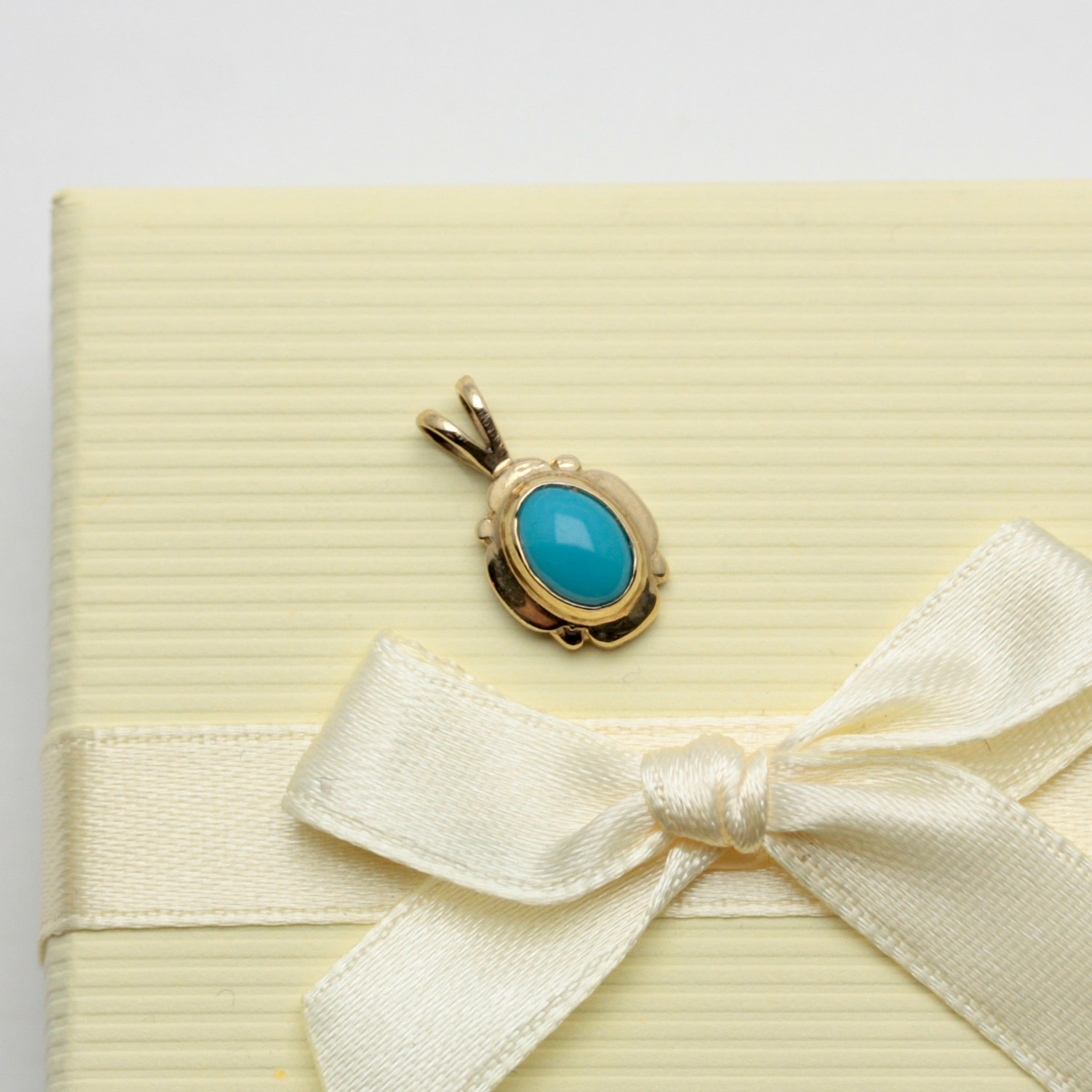 Small Vintage 9ct Gold Framed Turquoise Pendant