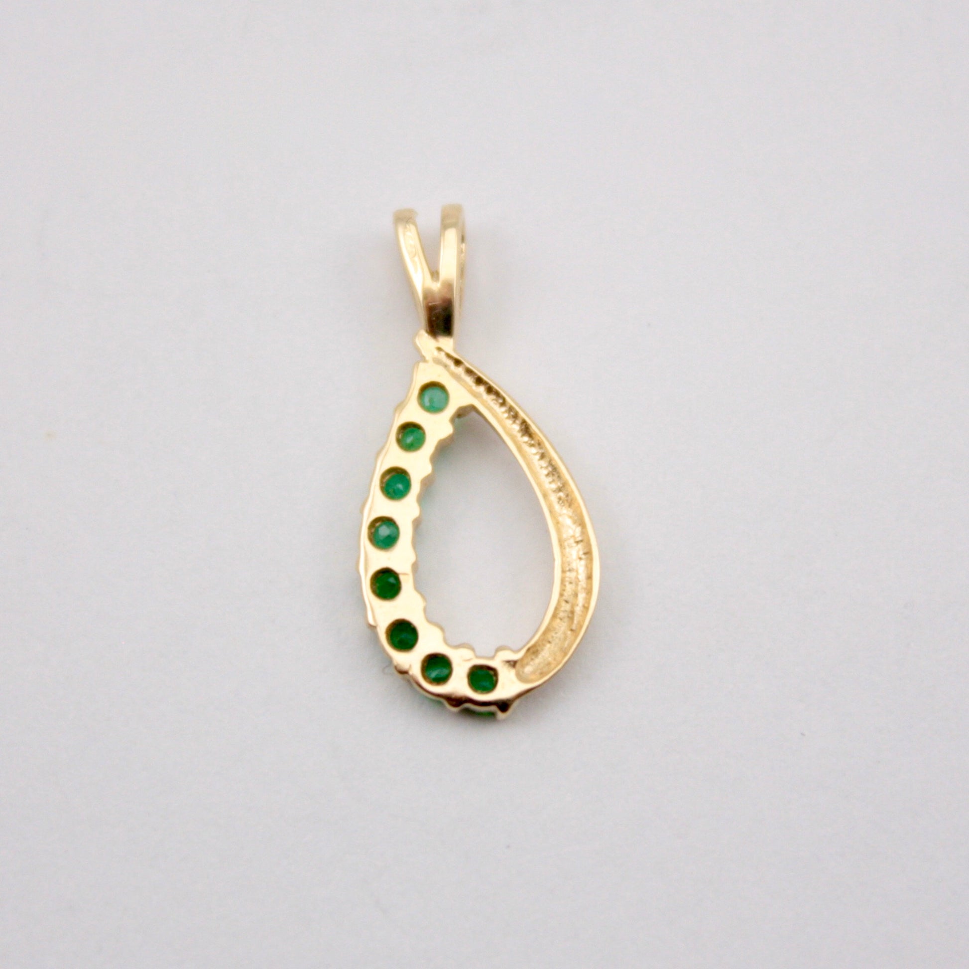 A small vintage solid 9ct yellow gold and emerald open teardrop shaped pendant.