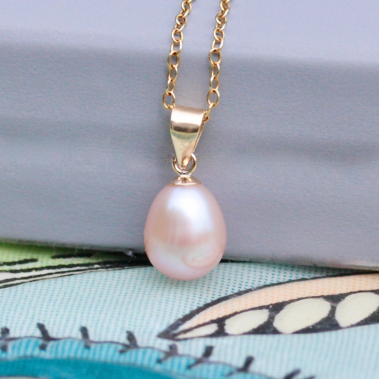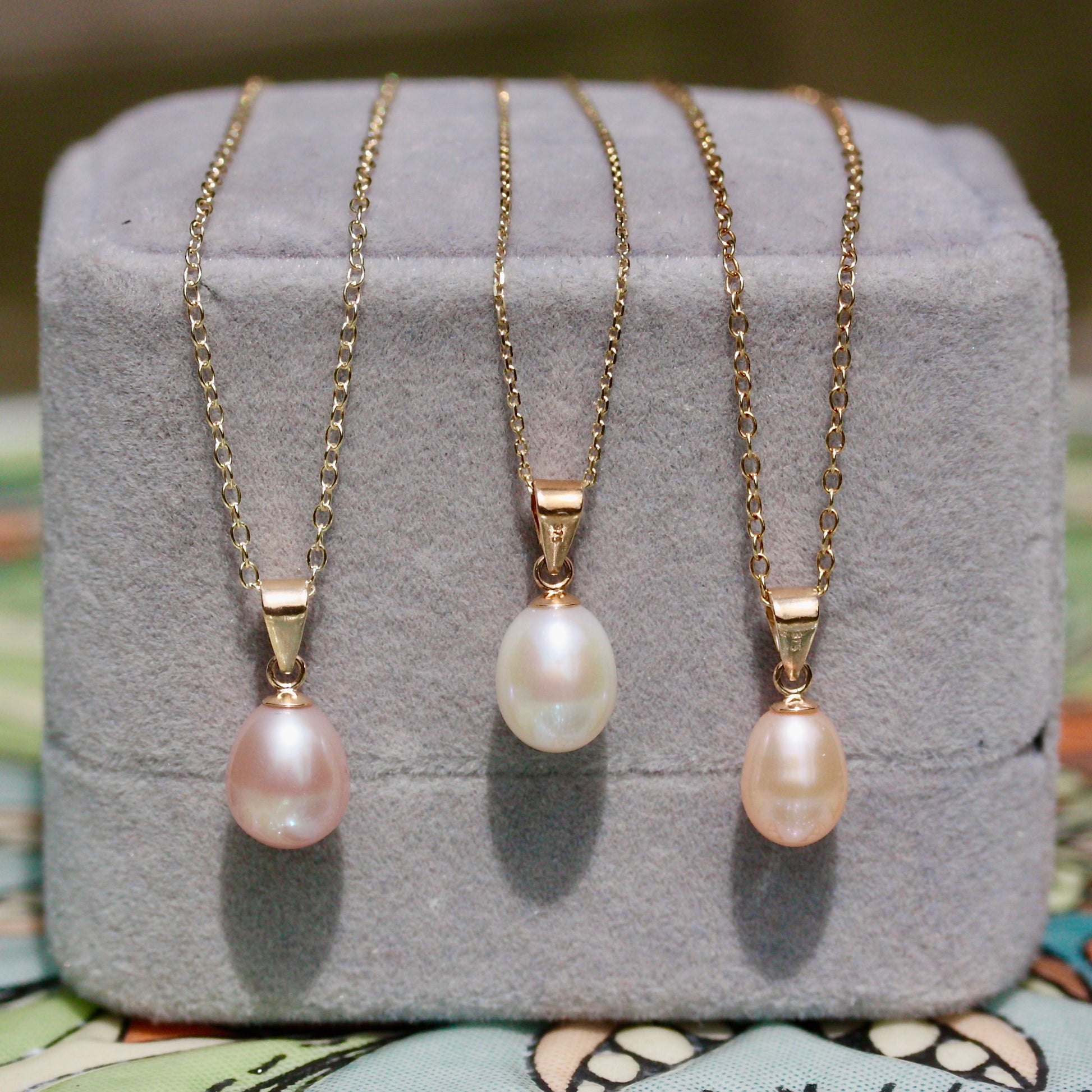 Solid 9ct Gold Freshwater Pearl Pendants - in Pink, White or Peach