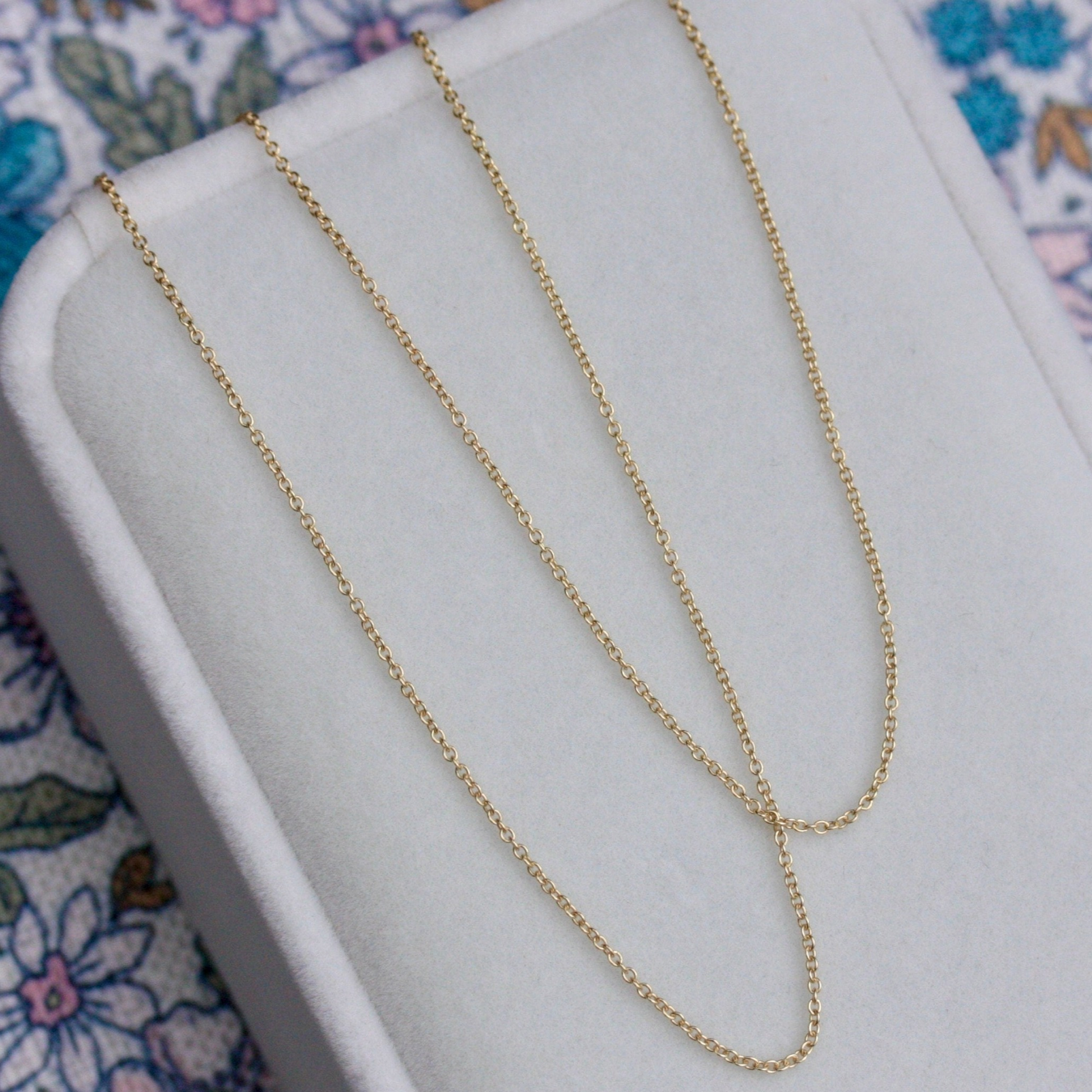 This solid 9ct yellow gold cable chain is 1mm wide and perfect for hanging small charms or pendants.