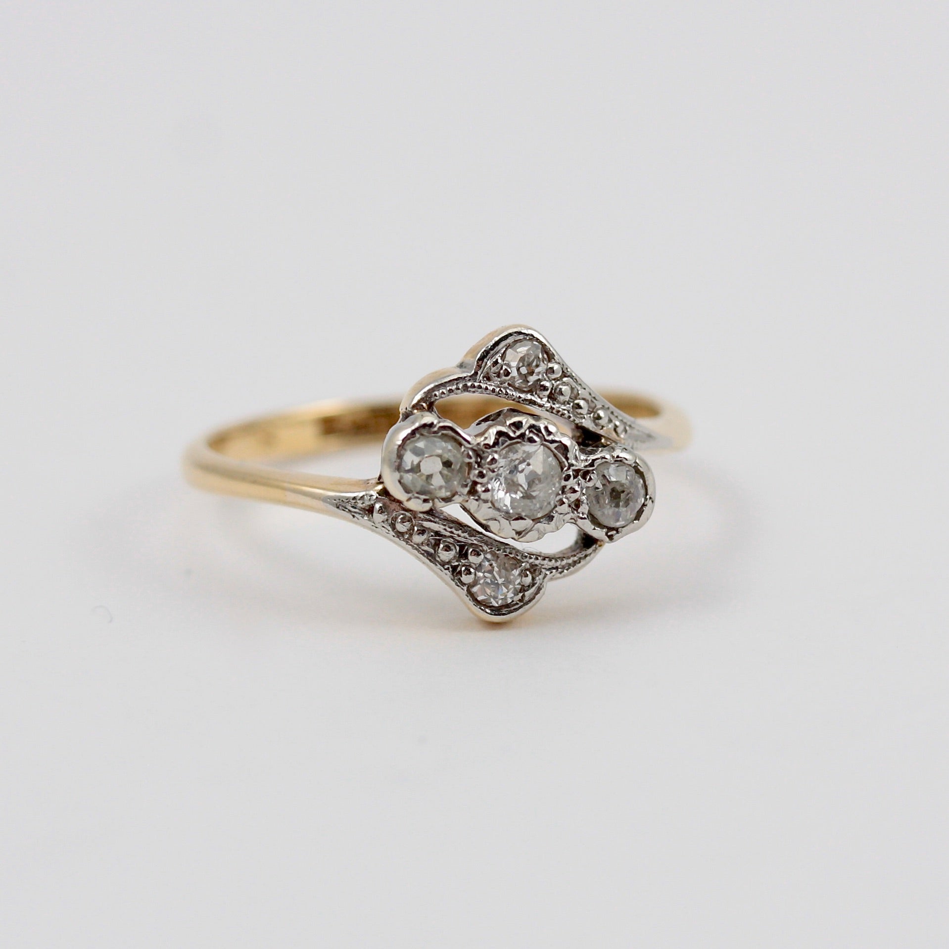 Vintage 18ct Gold and Platinum Diamond Crossover Ring