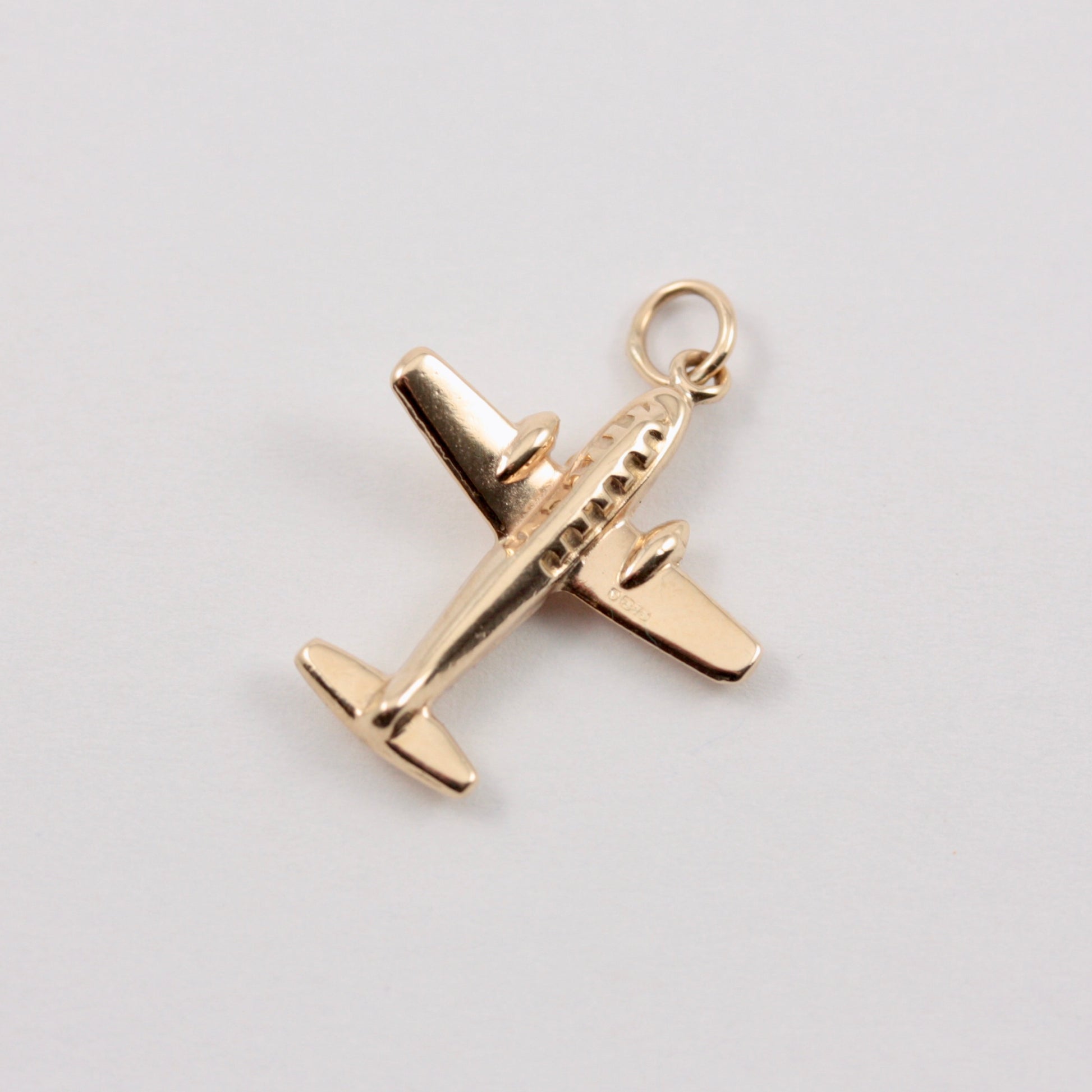 Vintage 9ct Gold Aeroplane Charm, c1950s