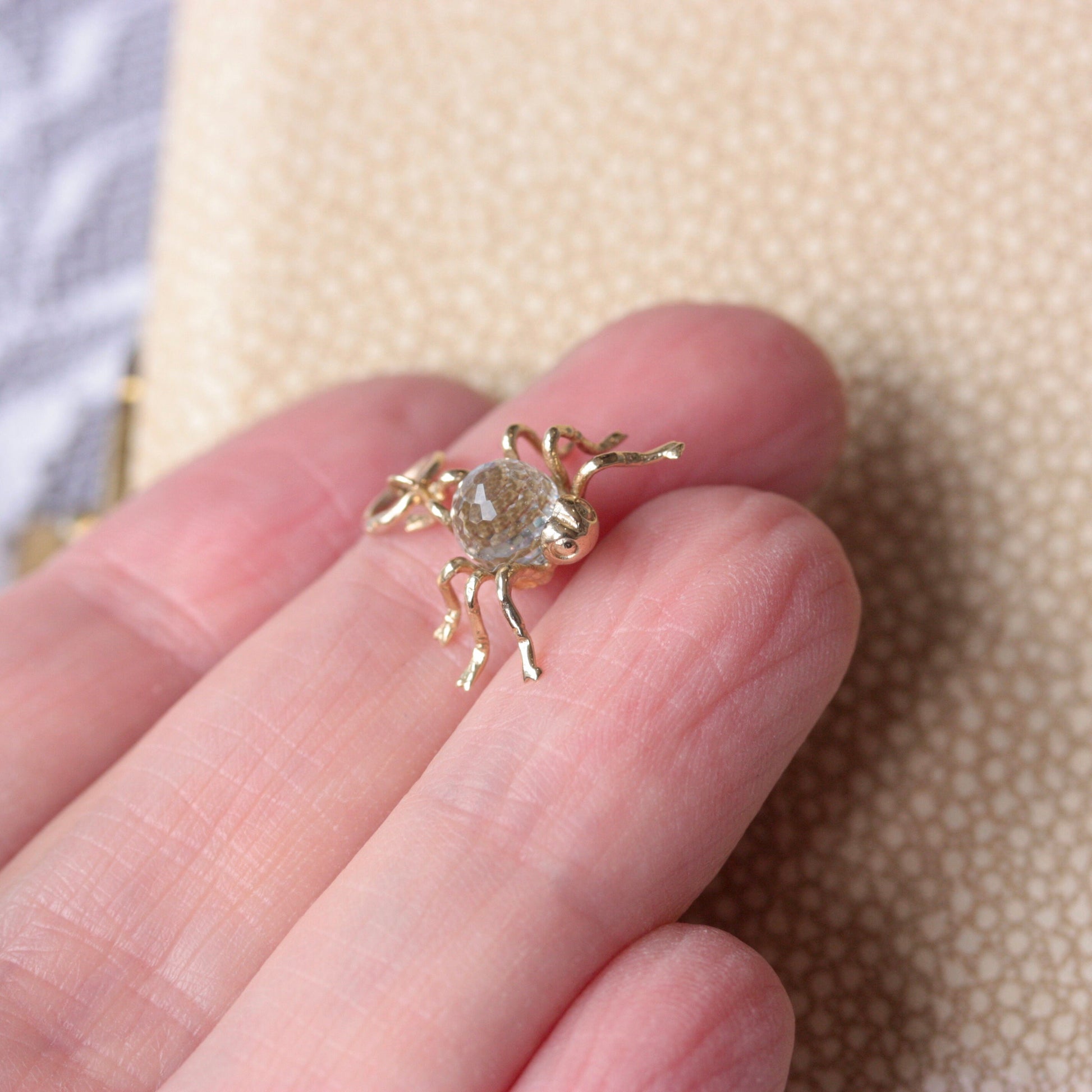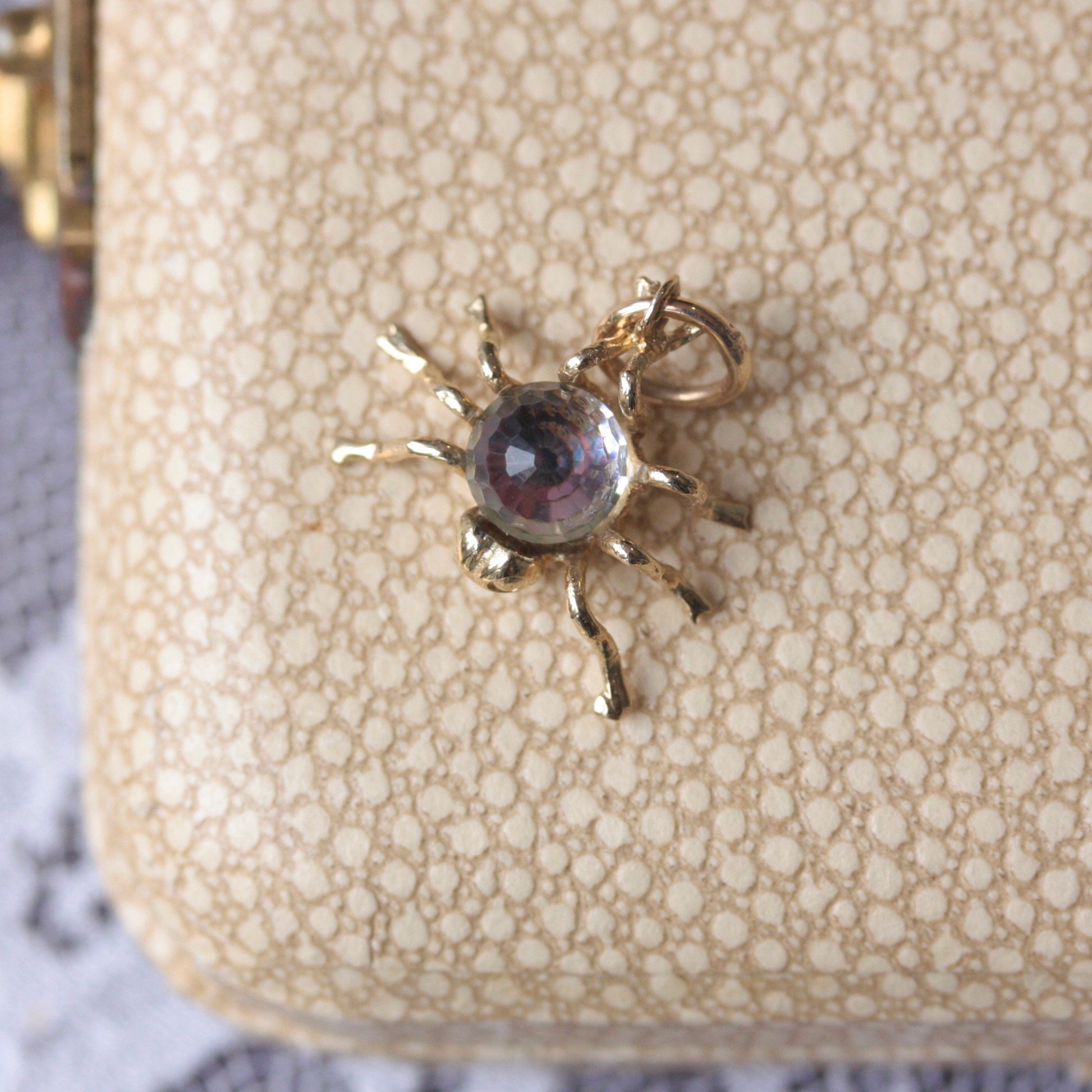 Vintage 9ct Gold and Aurora Borealis Crystal Spider Charm, 1991