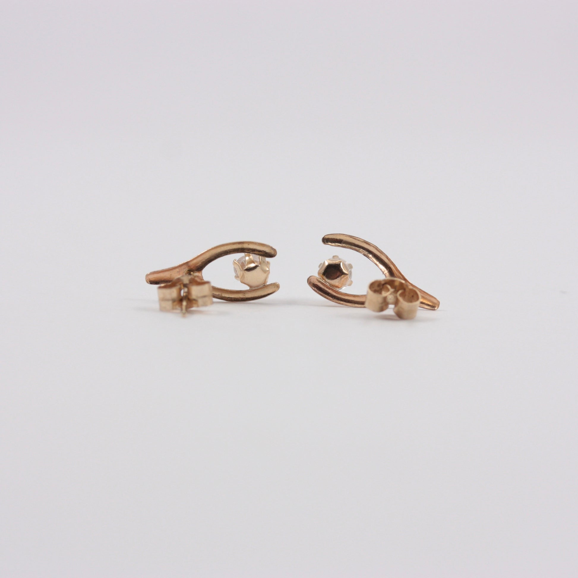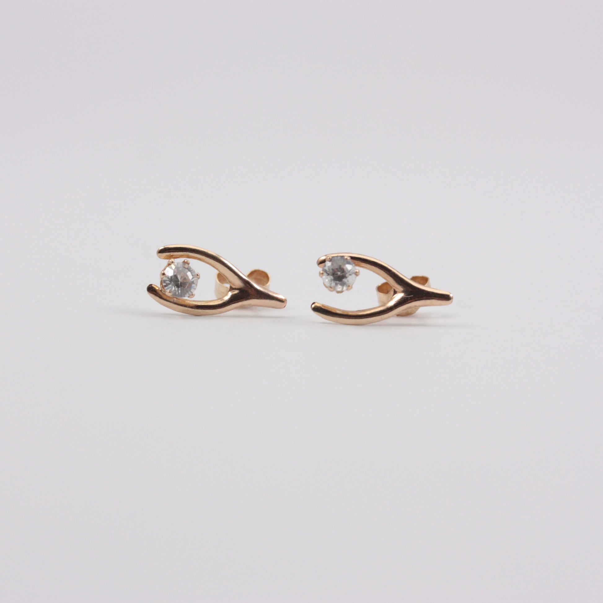 Vintage 9ct Gold and Crystal Wishbone Earrings, c1970s