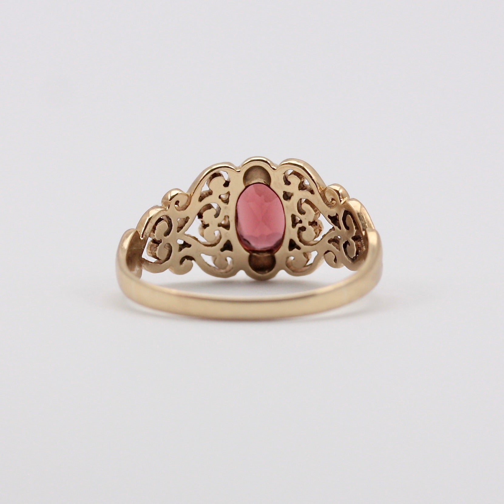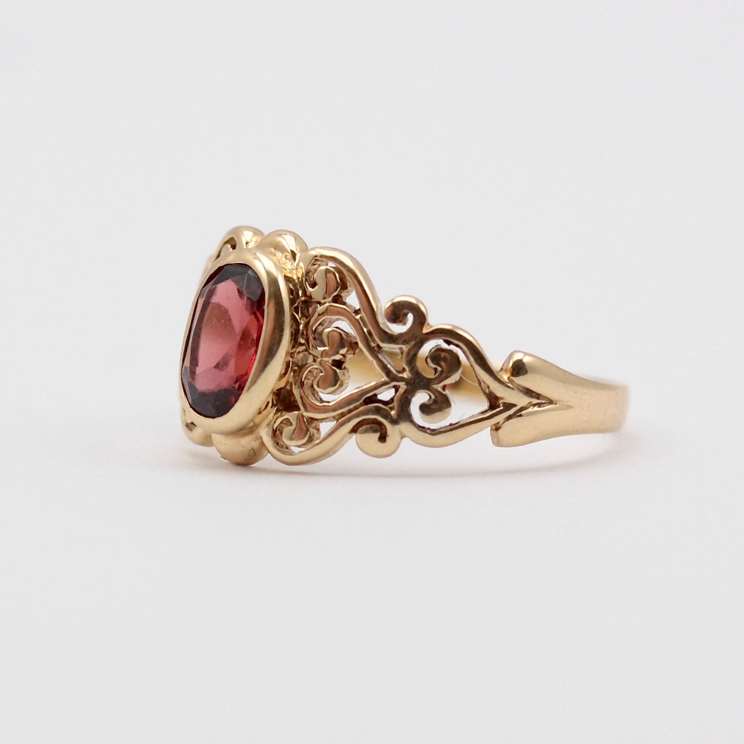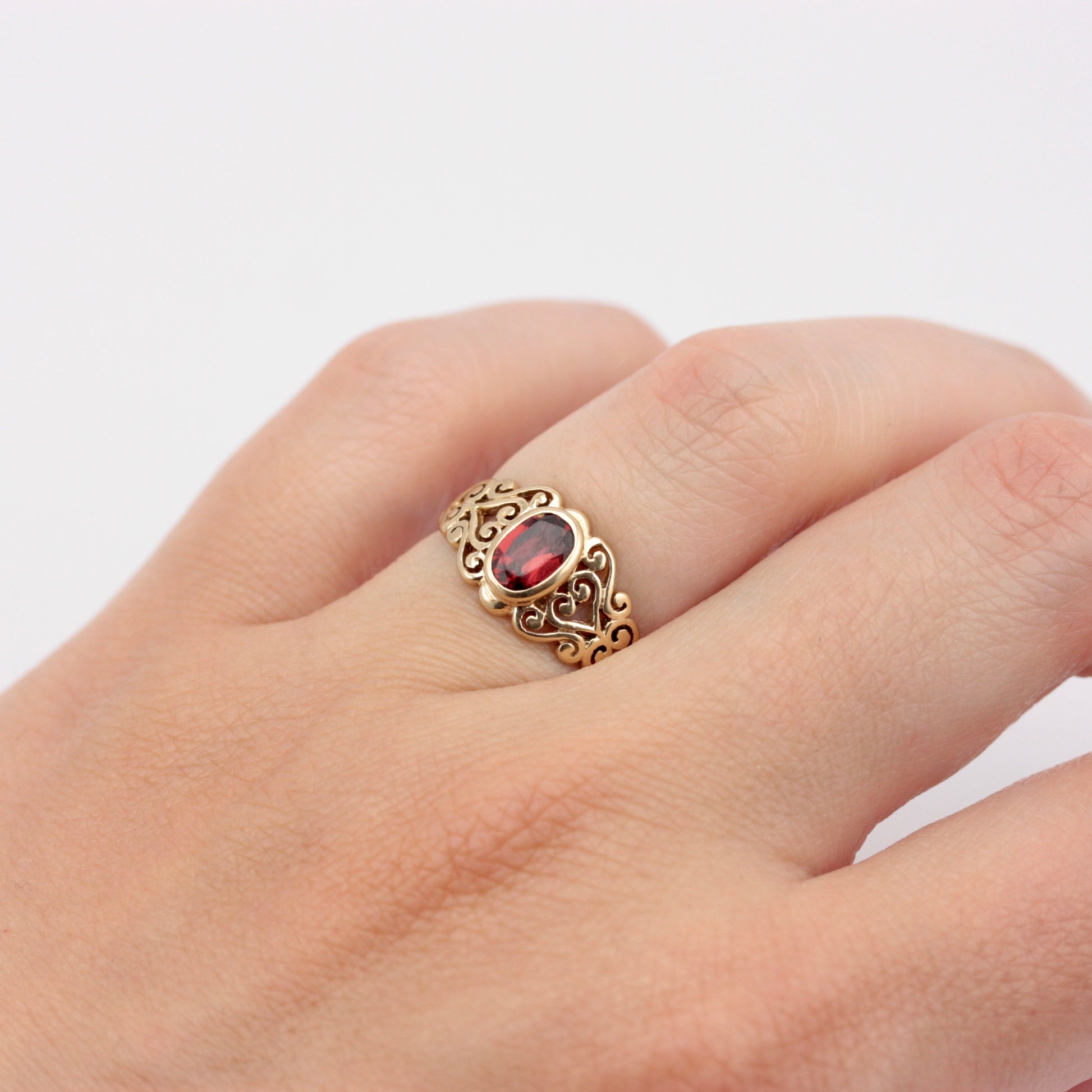Vintage 9ct Gold and Garnet Scroll Design Ring
