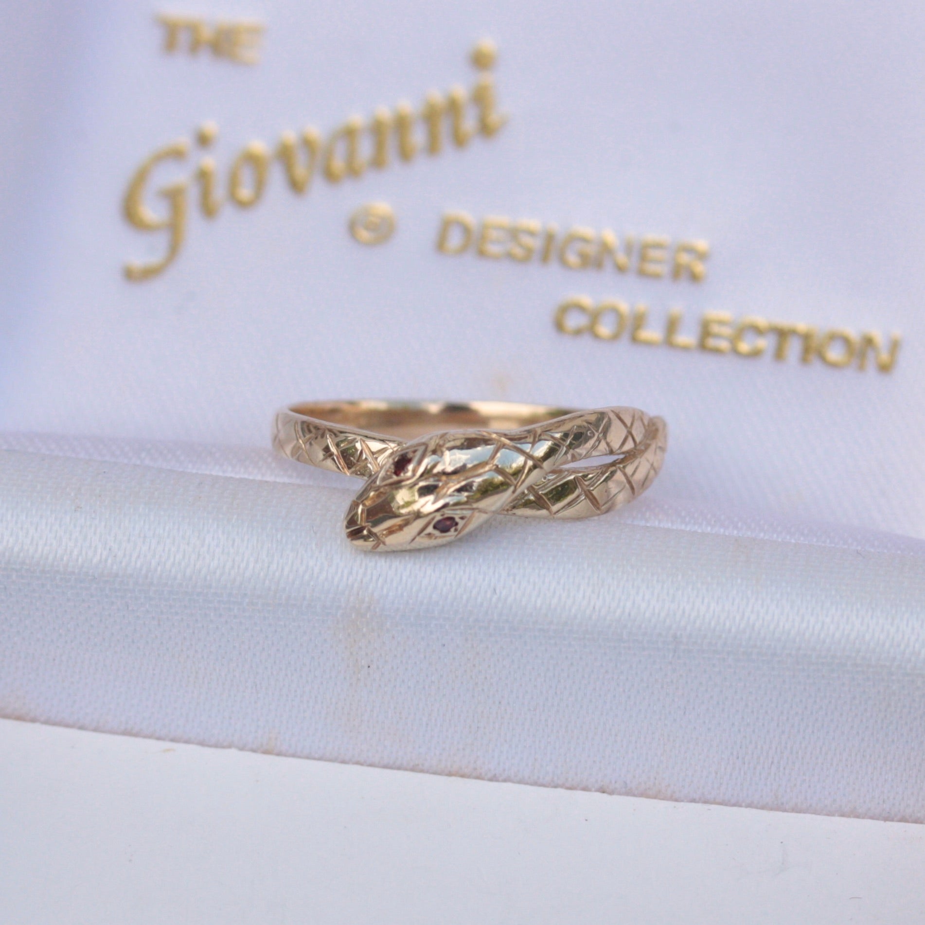 Vintage 9ct Gold and Garnet Snake Ring, 1987