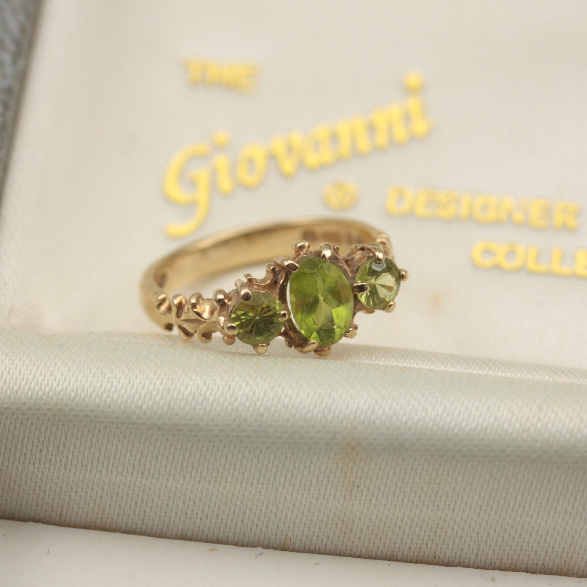Vintage 9ct Gold and Peridot 3 Stone Ring, 1990