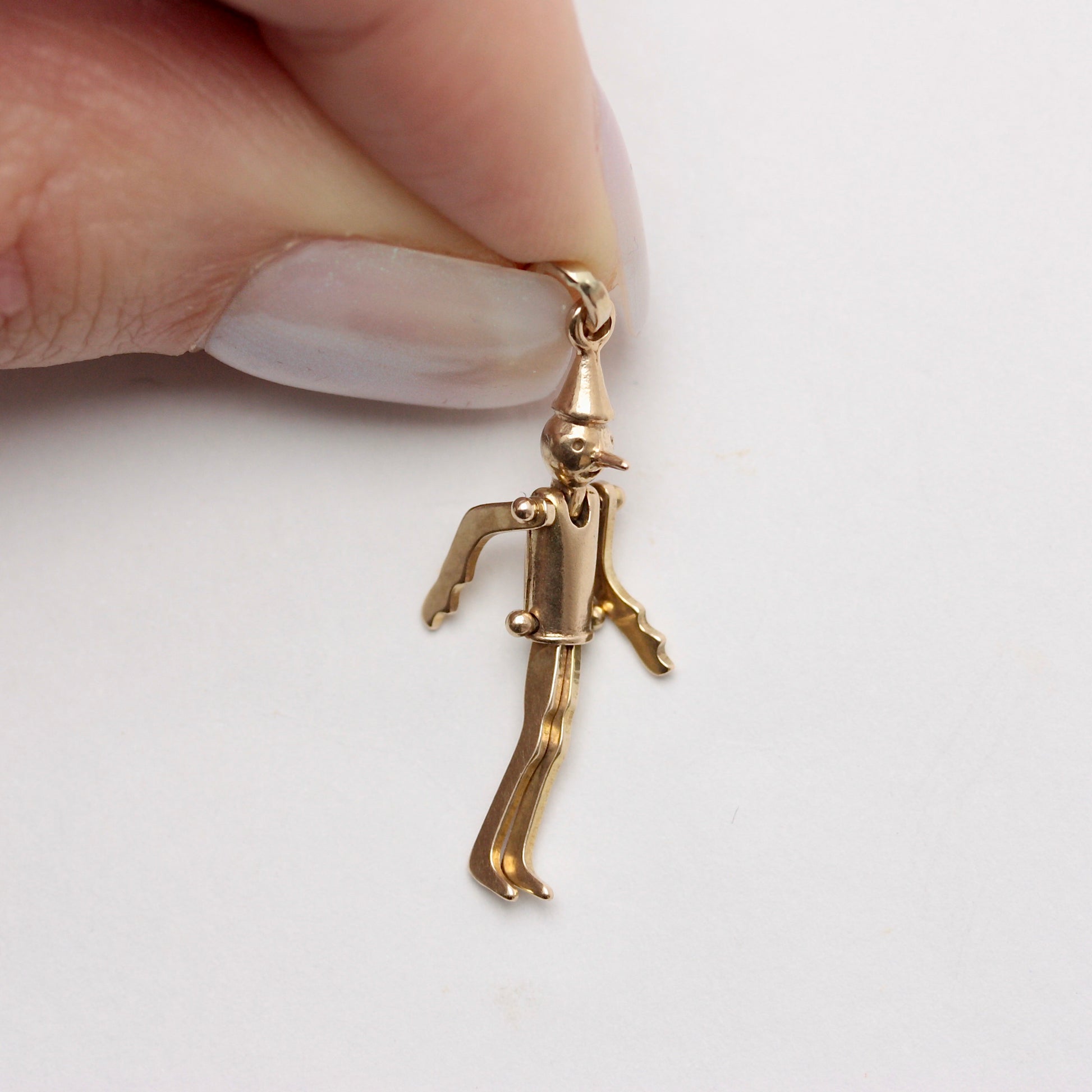 A really fun 9ct yellow gold Pinocchio charm with moveable arms, legs and head.