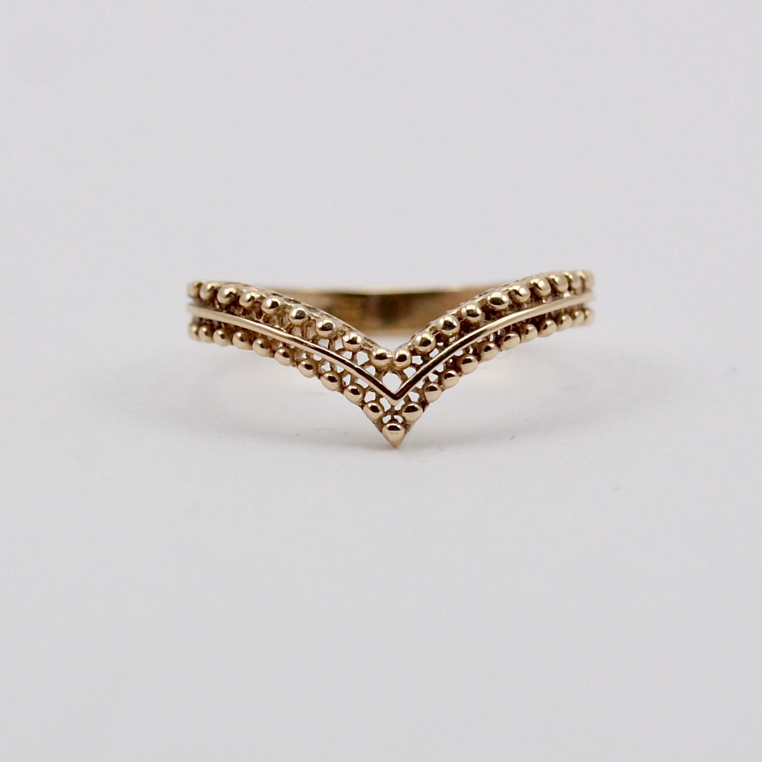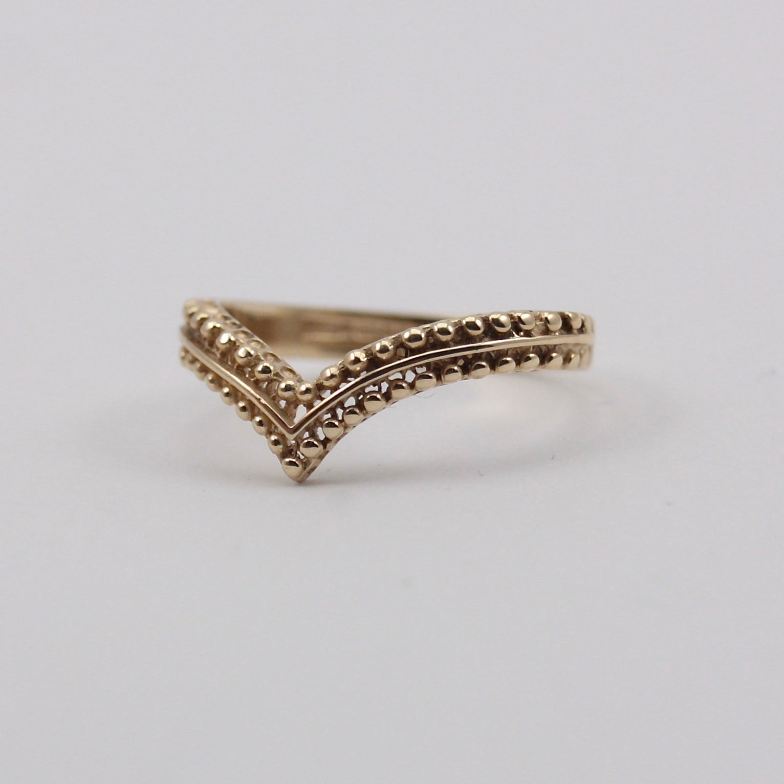 Vintage 9ct Gold Beaded Detail Wishbone Ring.