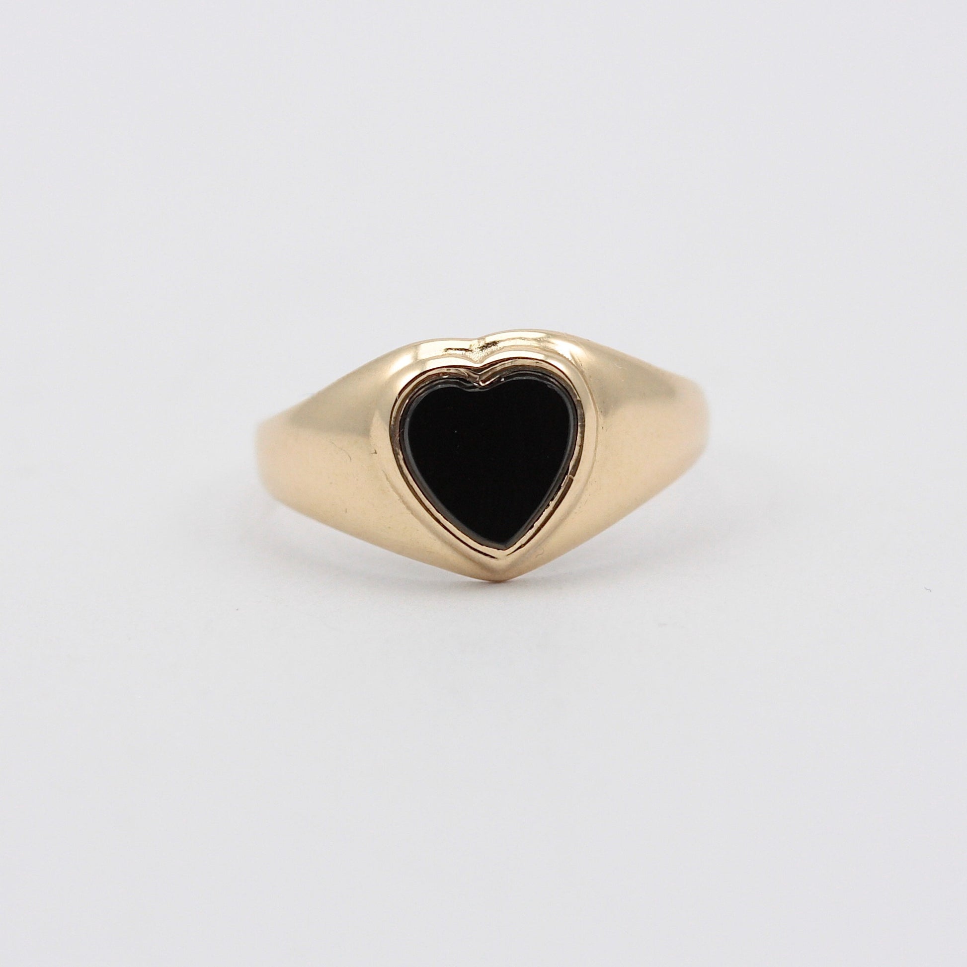 Vintage 9ct Gold + Black Onyx Heart Signet Ring, 1983