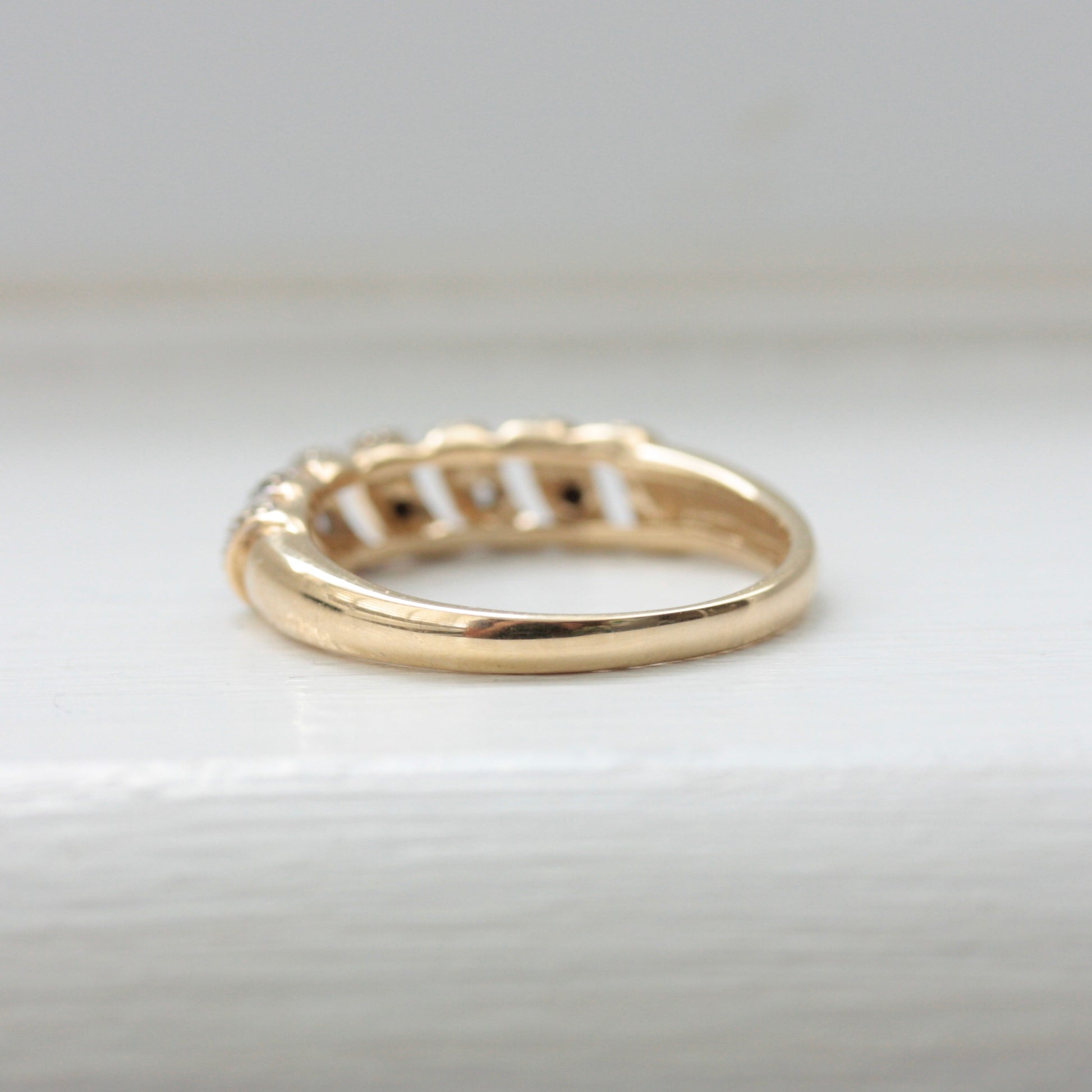 Vintage 9ct Gold Black & White Diamond Open Twist Ring
