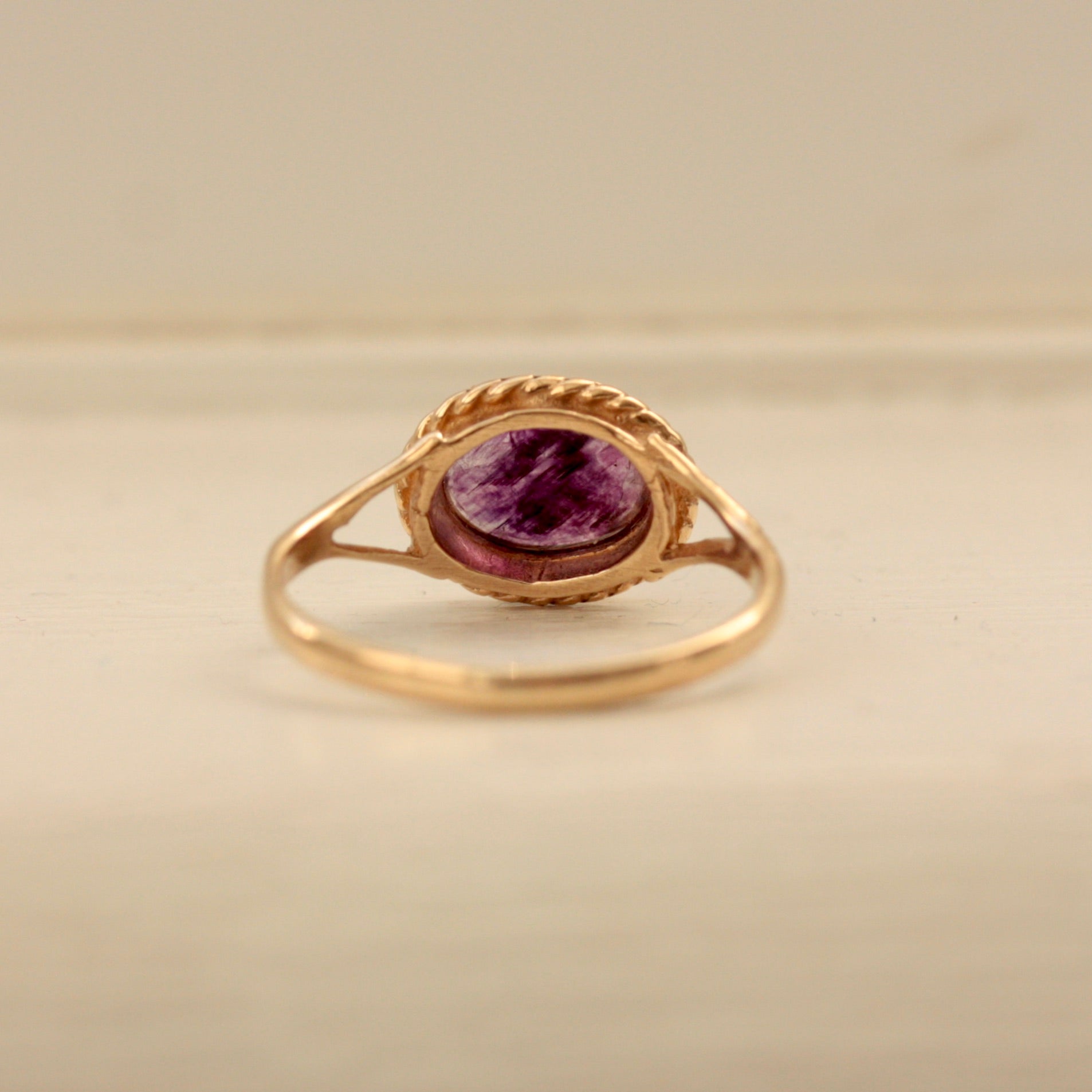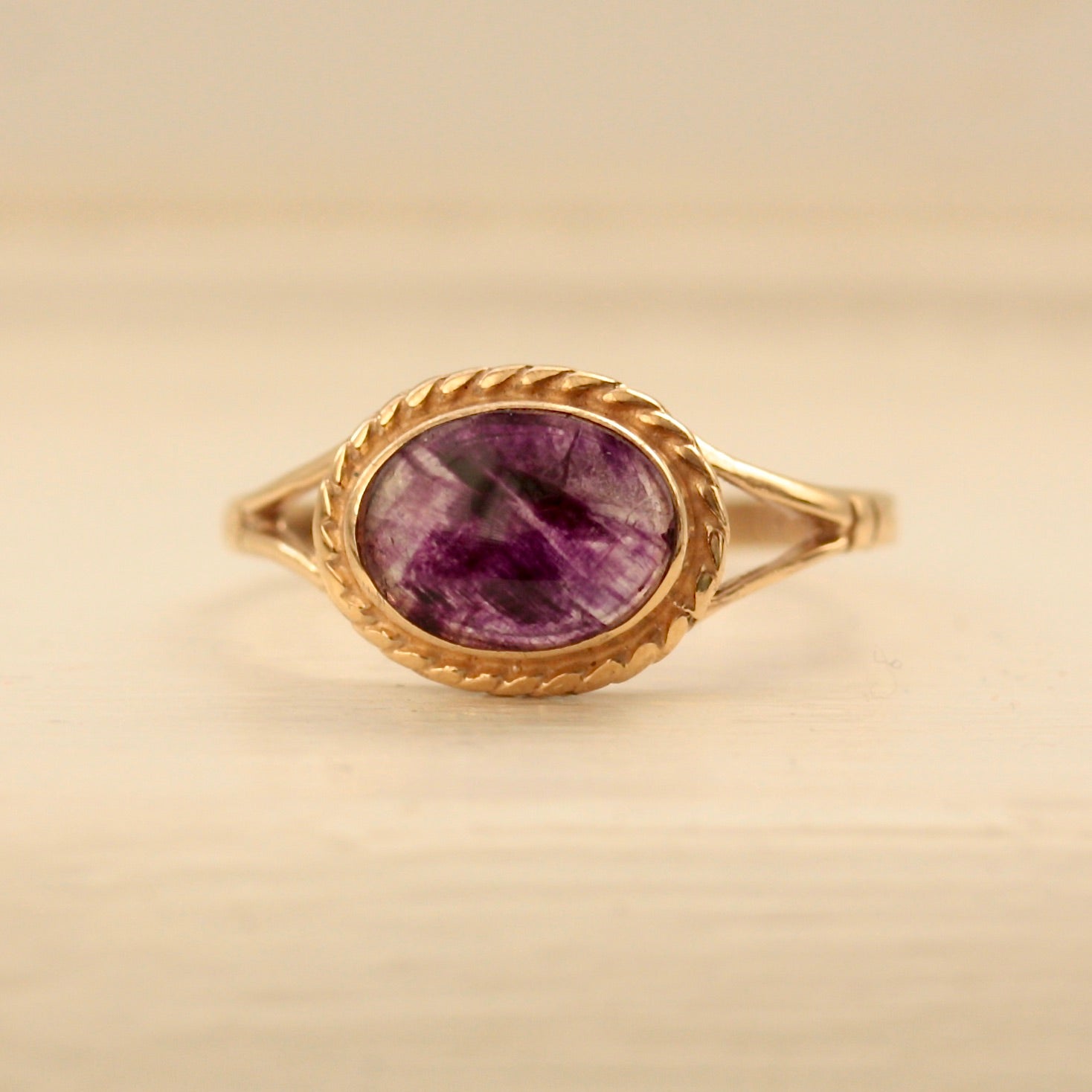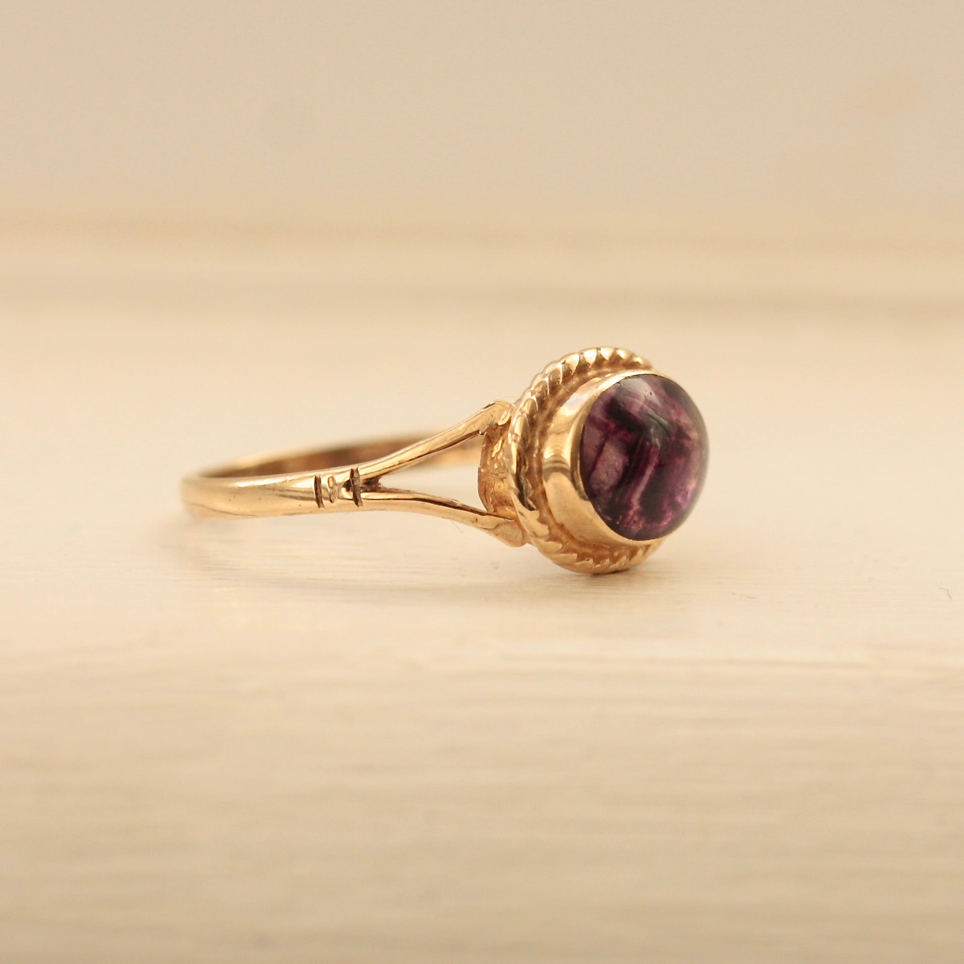 A lovely vintage 9ct yellow gold solitaire ring set with Blue John.
