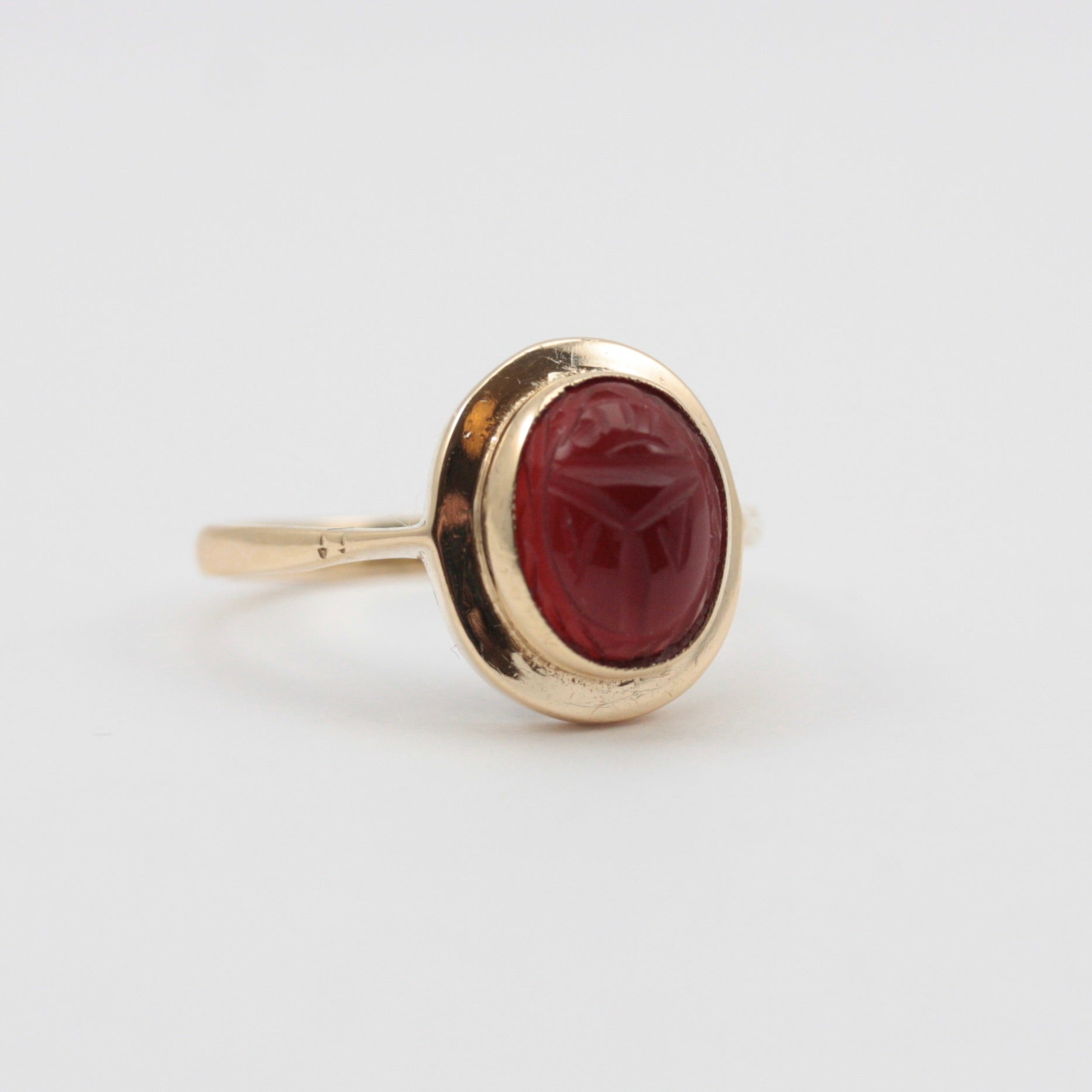 Vintage 9ct Gold Carnelian Scarab Beetle Ring.