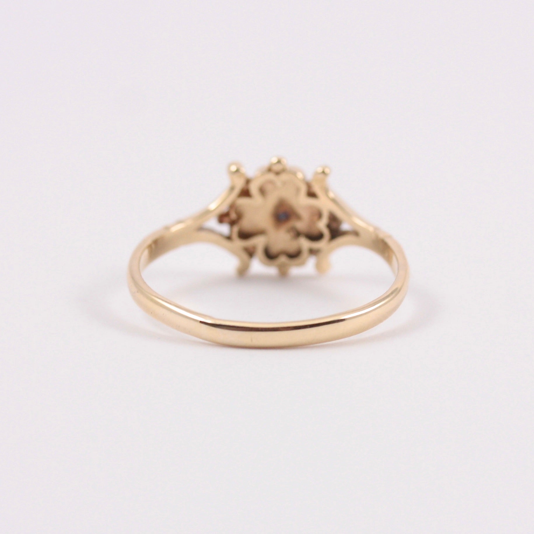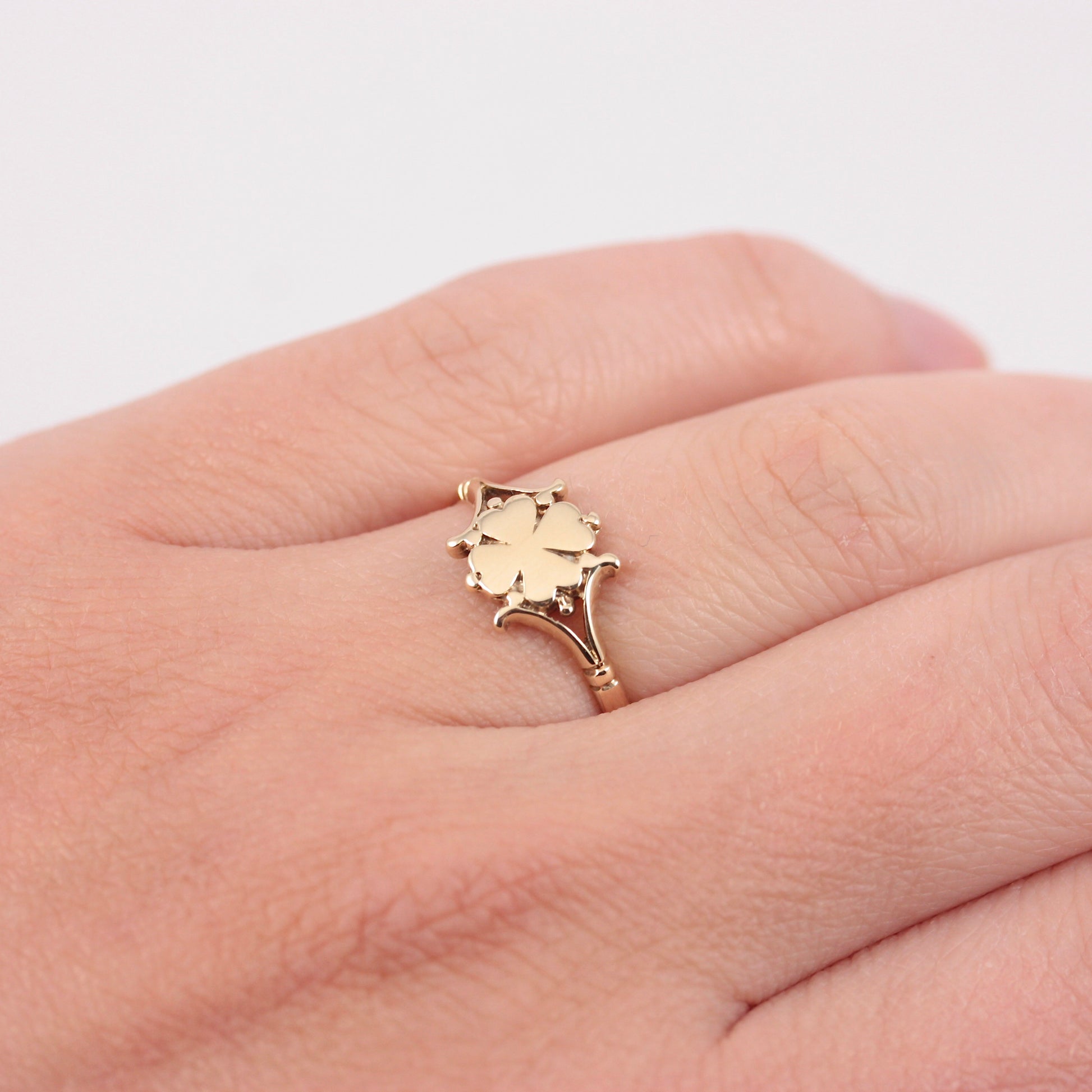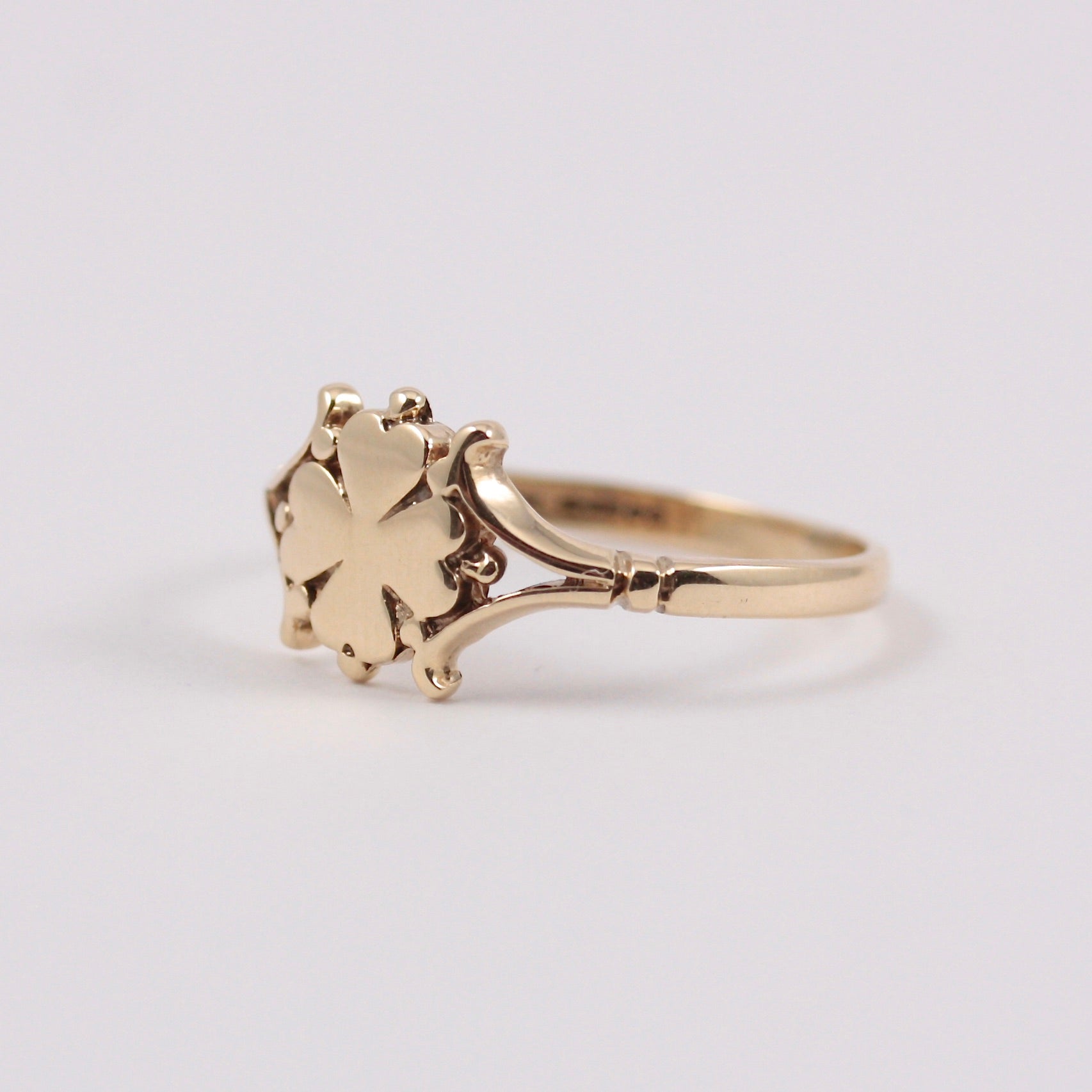 A lovely vintage solid 9ct yellow gold ring in the design of a clover / shamrock.
