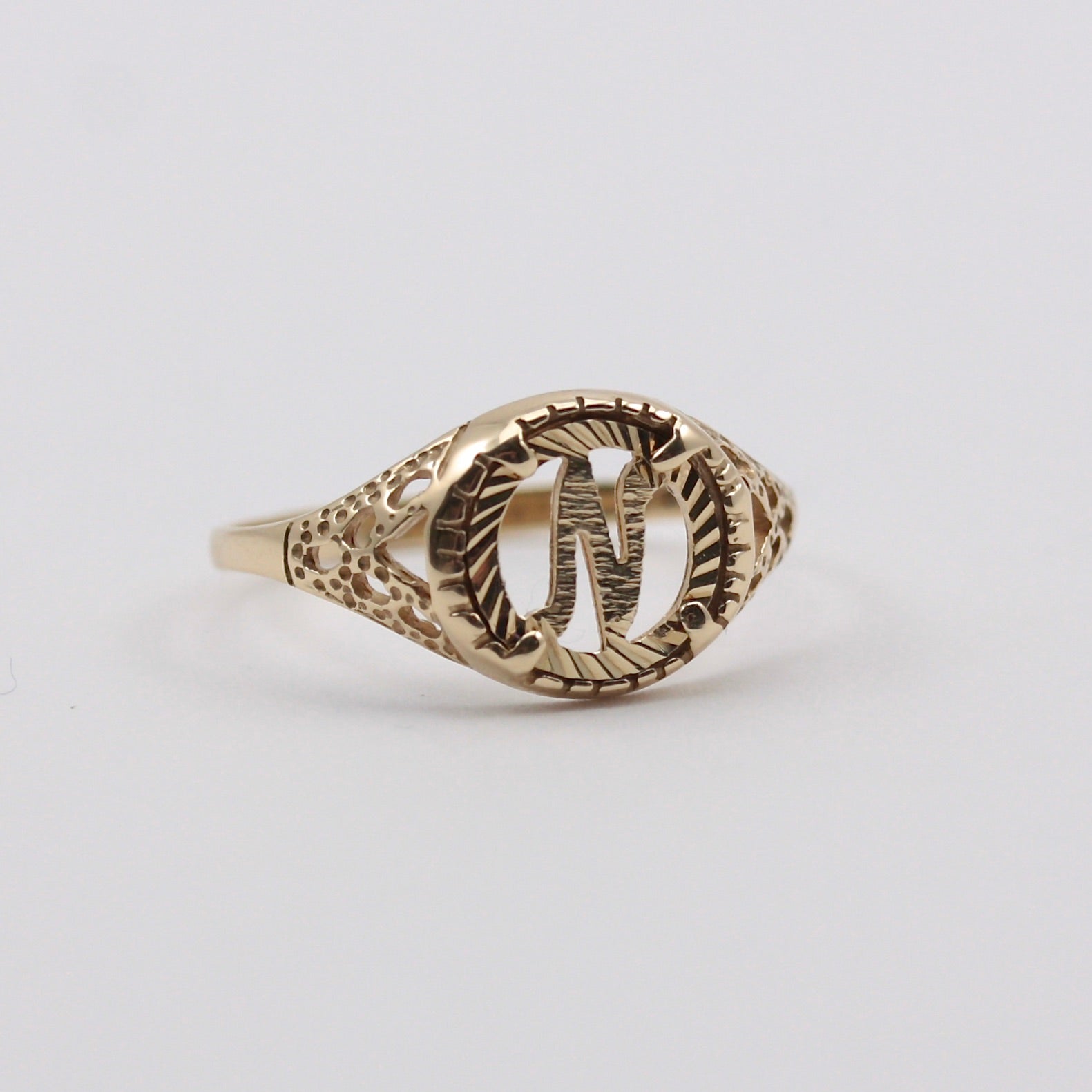 Vintage 9ct Gold Coin Style Letter 'N' Ring.