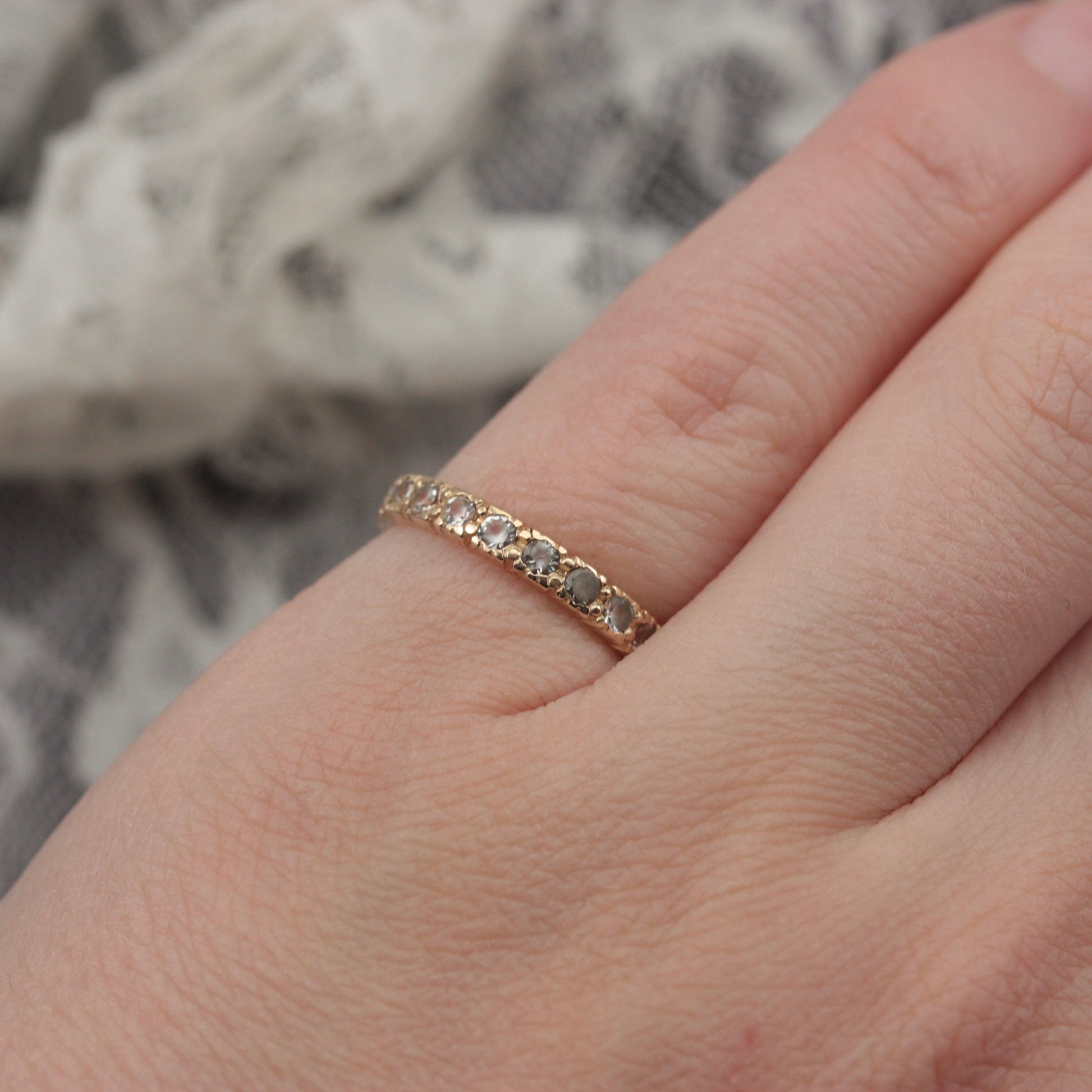 A vintage 9ct gold eternity ring with colourless quartz.