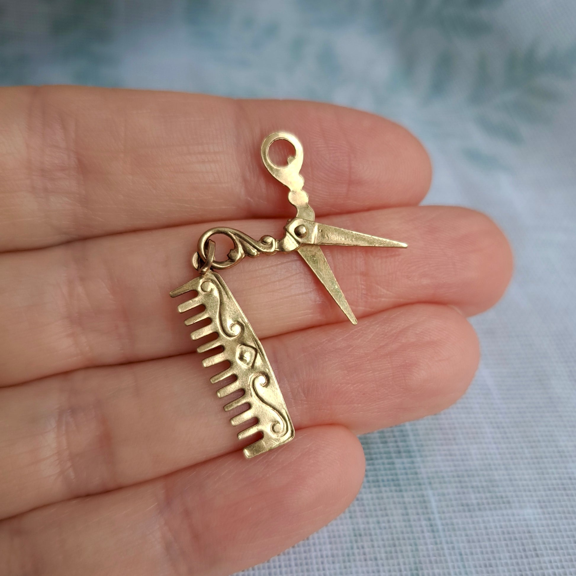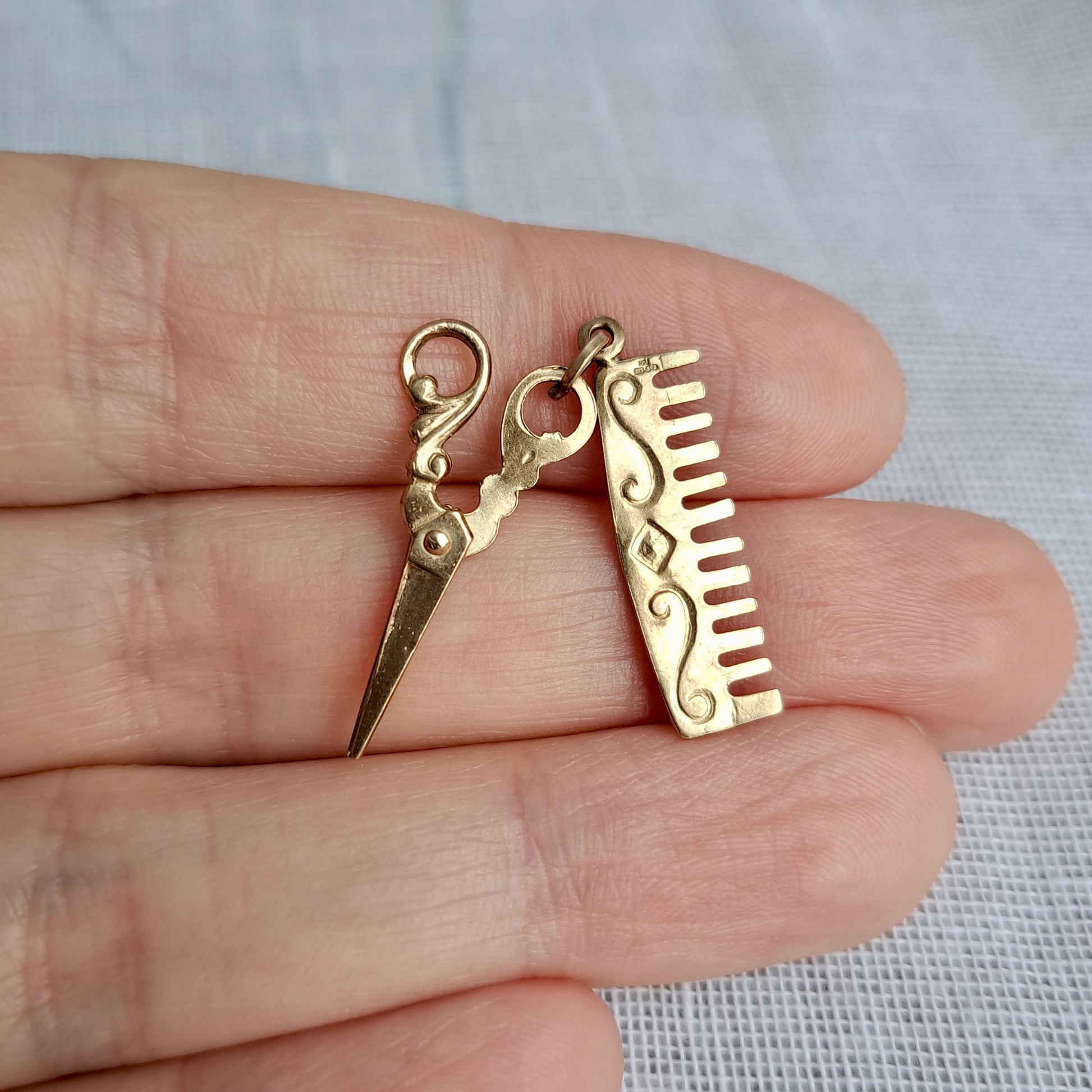 Vintage 9ct Gold Comb and Moveable Scissors Charm, 1992