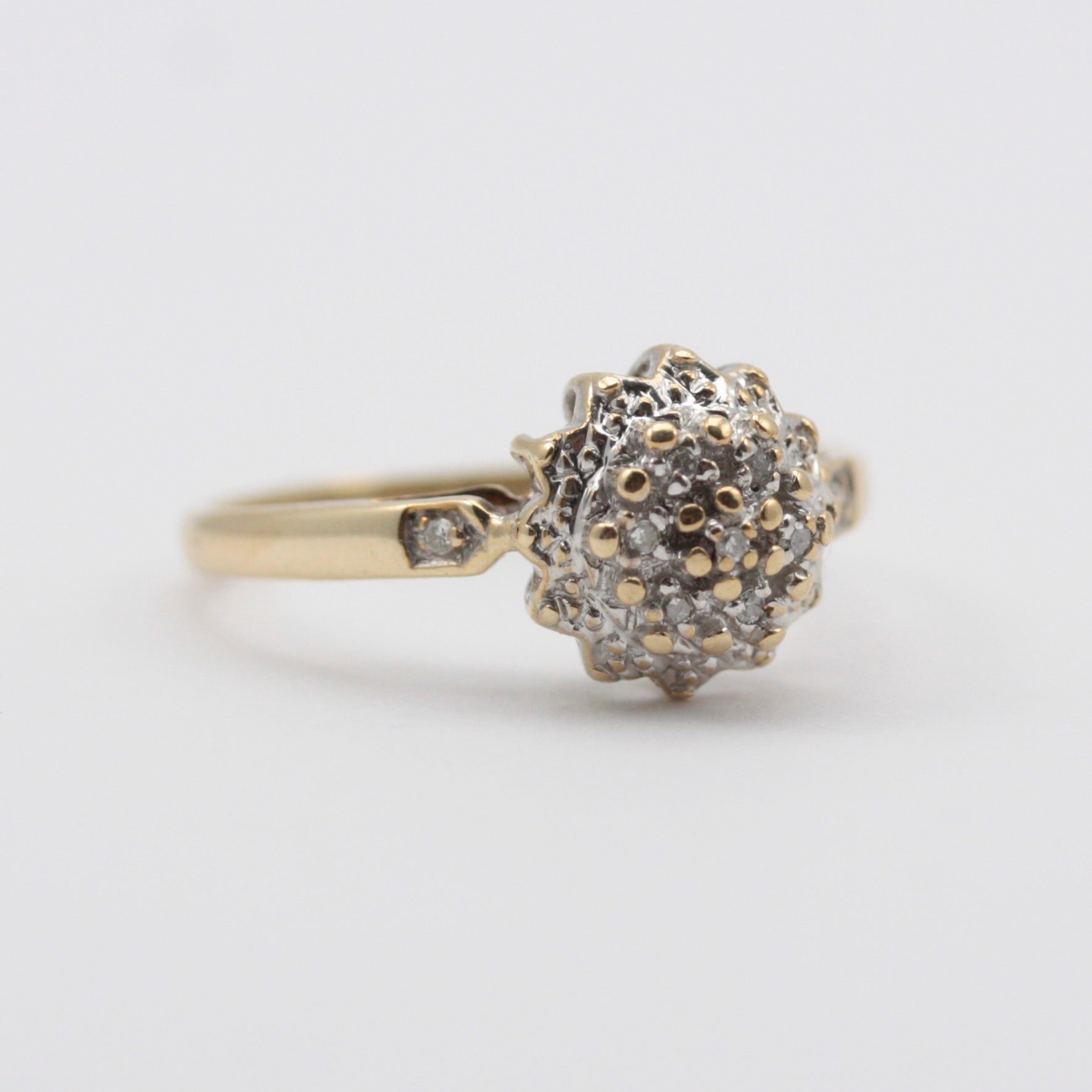 Vintage 9ct Gold Diamond Domed Cluster Ring