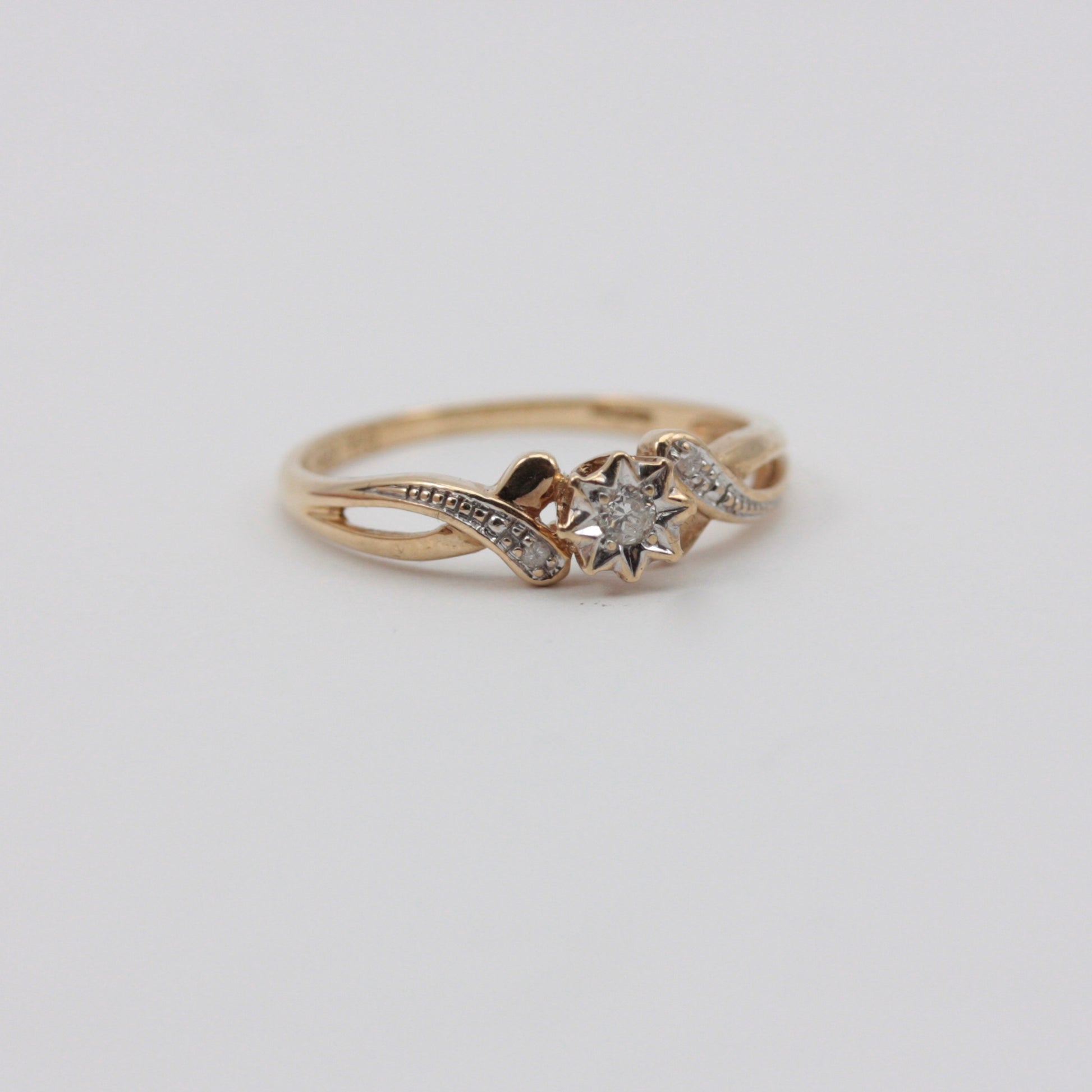 Vintage 9ct Gold Diamond Star Twist Ring