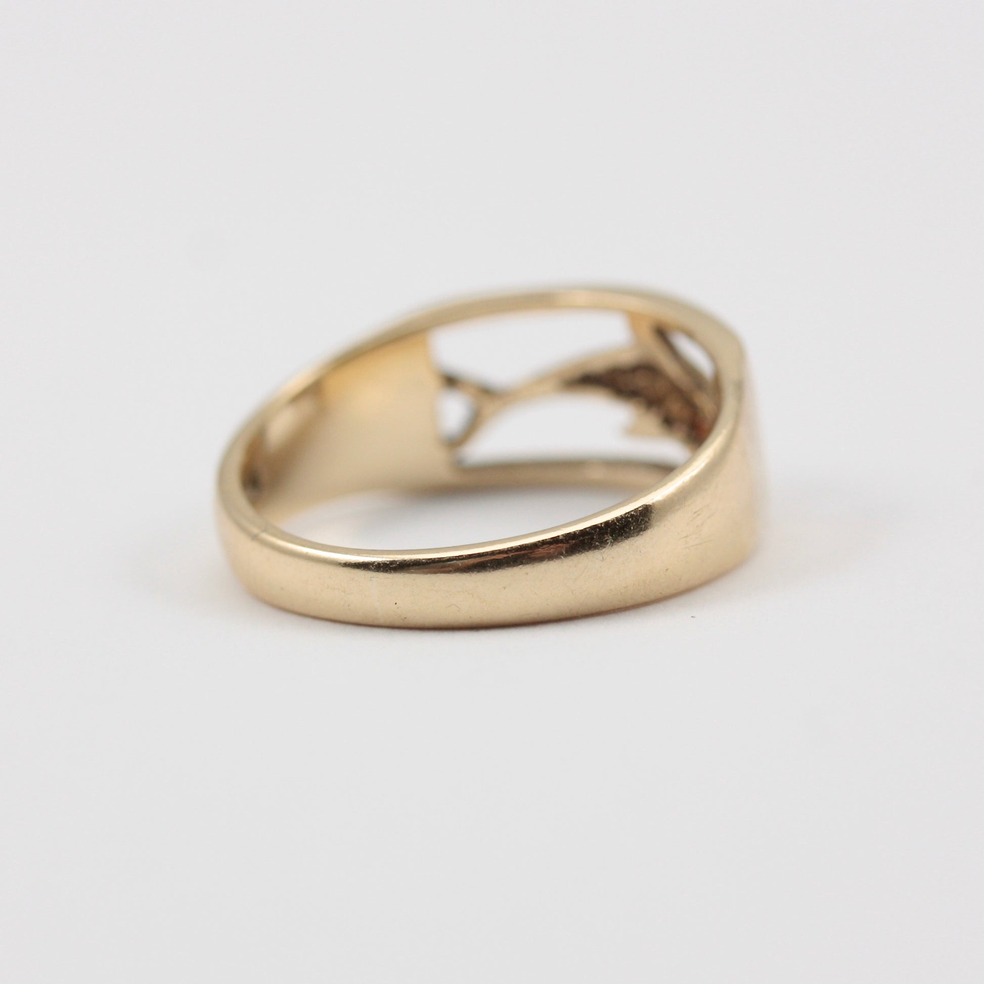 Vintage 9ct Gold Dolphin Cut Out Ring with Garnet