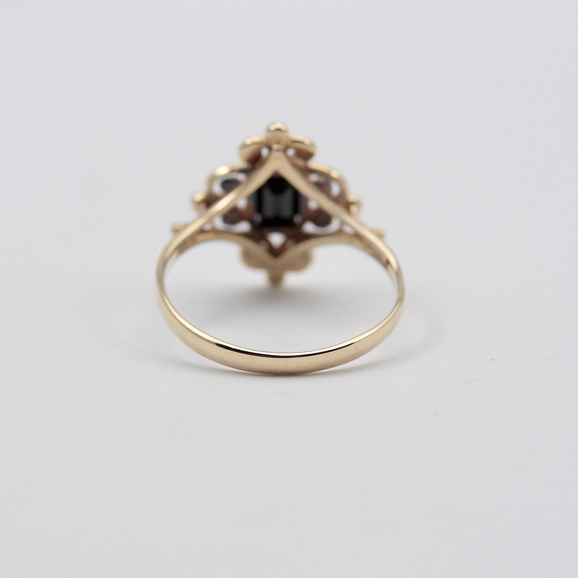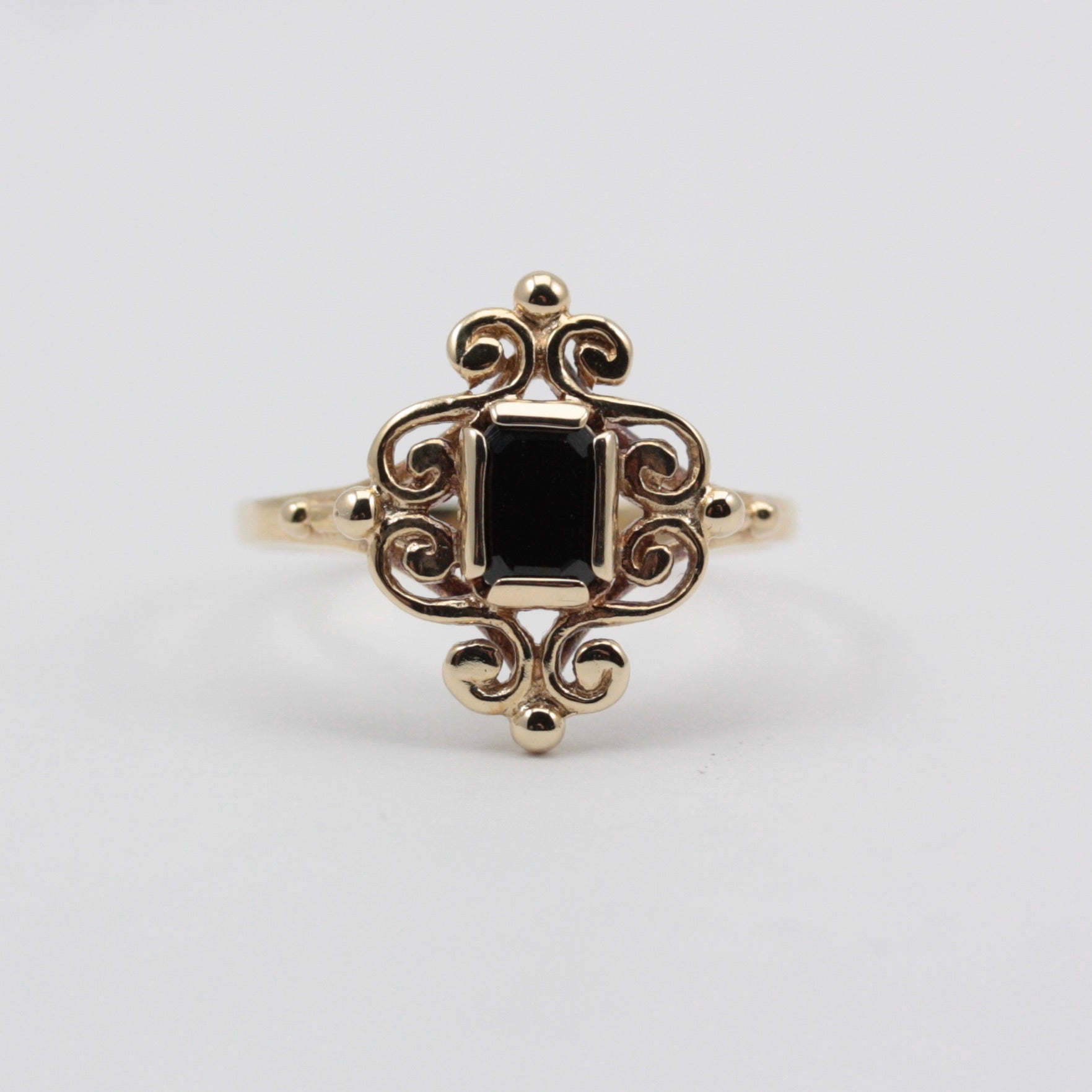 Vintage 9ct Gold Fancy Framed Onyx Ring, 1994