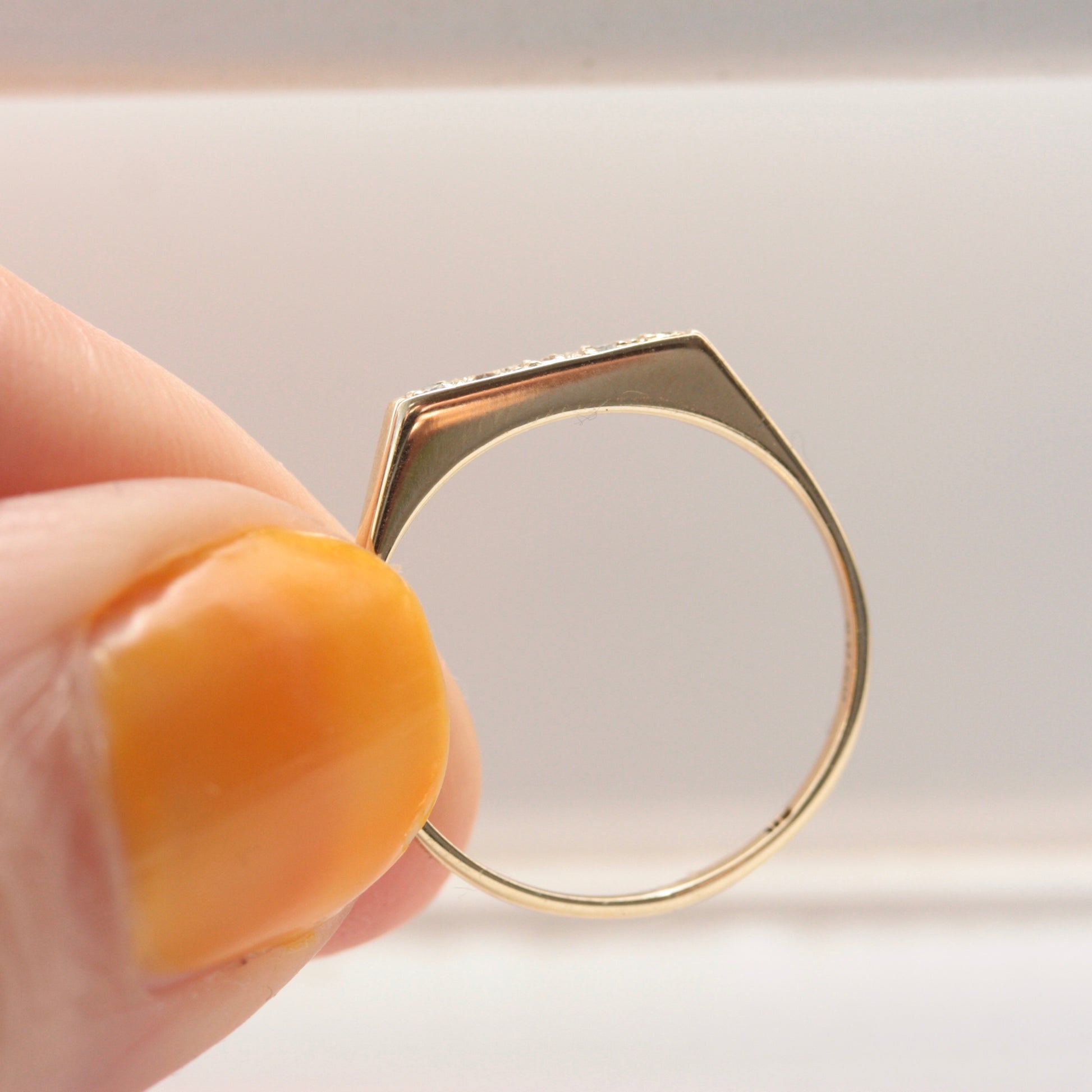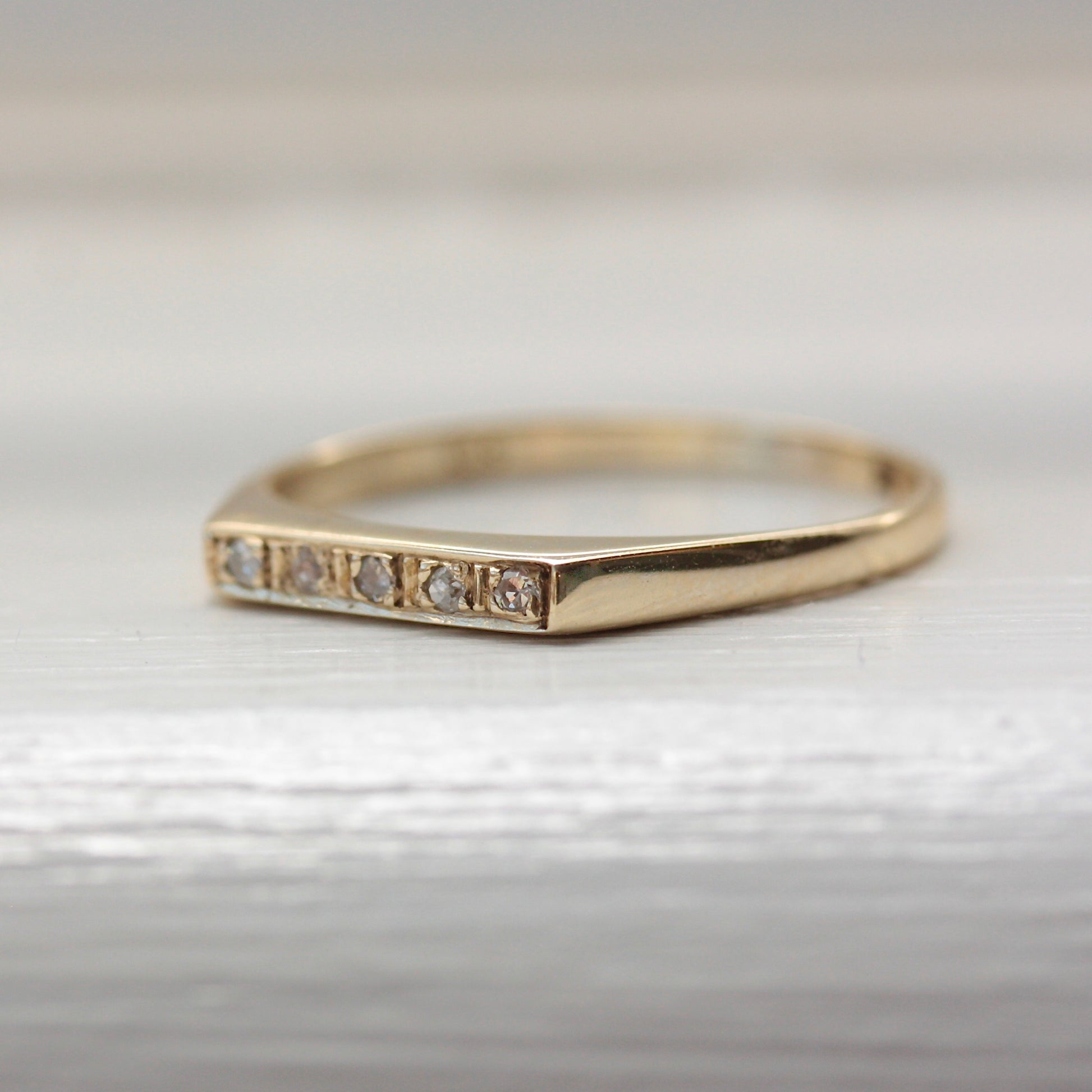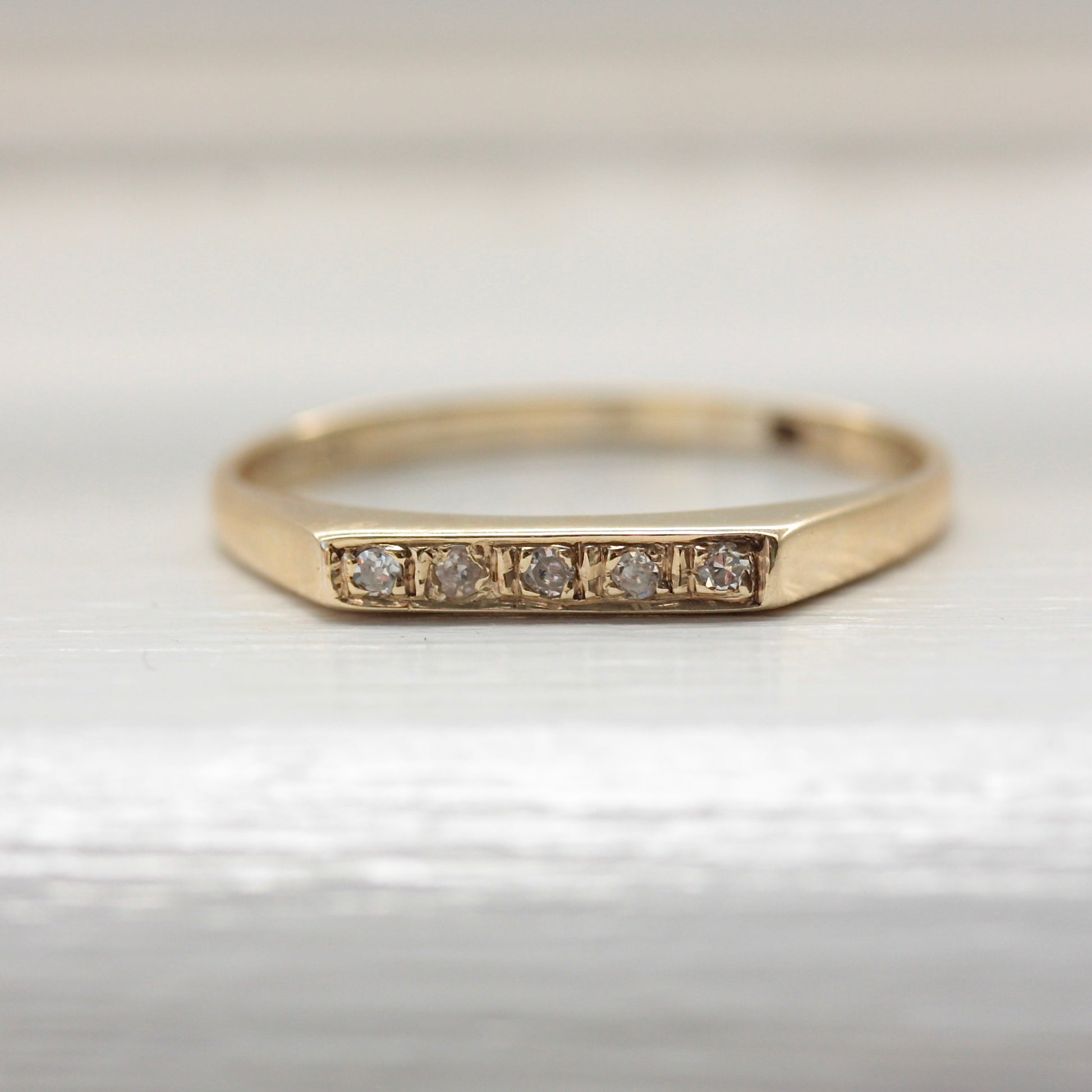 A lovely and dainty solid 9ct yellow gold ring which is flat to the front and set with 5 small diamonds.