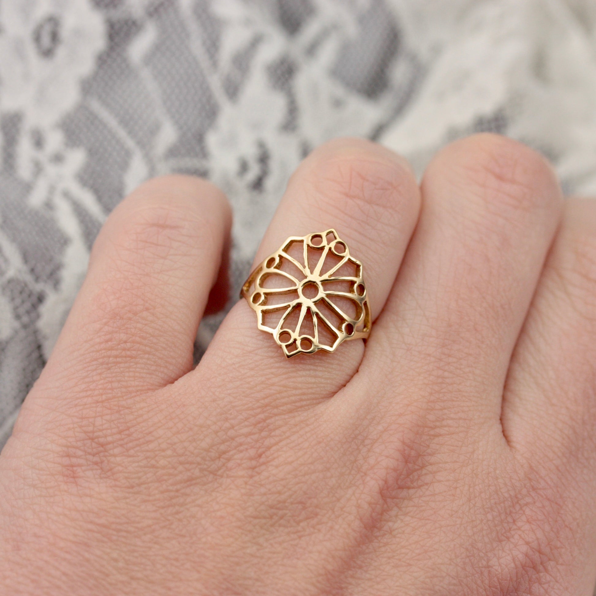 Vintage 9ct Gold Floral Openwork Ring, 1997