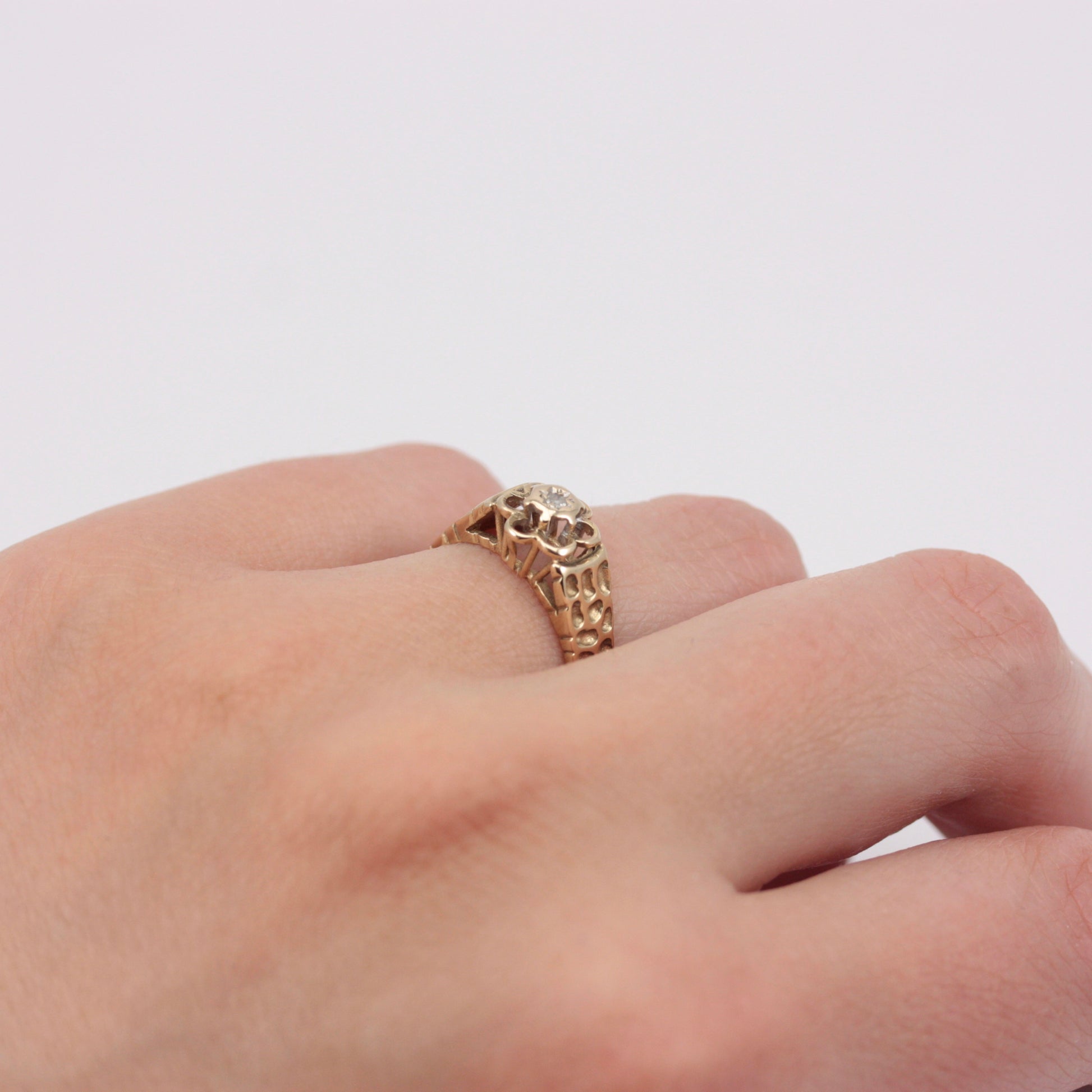 Vintage 9ct Gold Flower Design Ring with Diamond, 1976