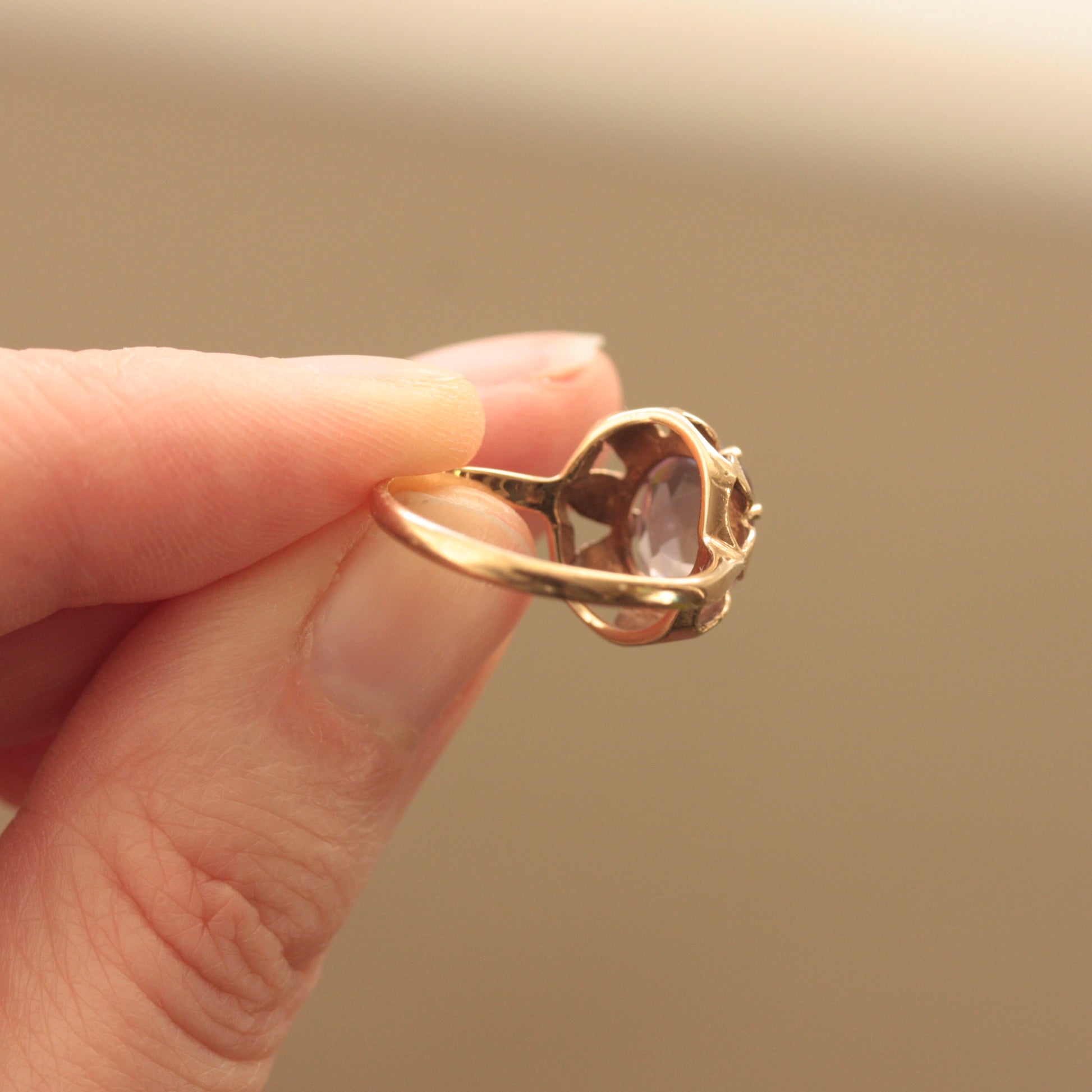 Vintage 9ct Gold Flower Set Amethyst Ring, 1969