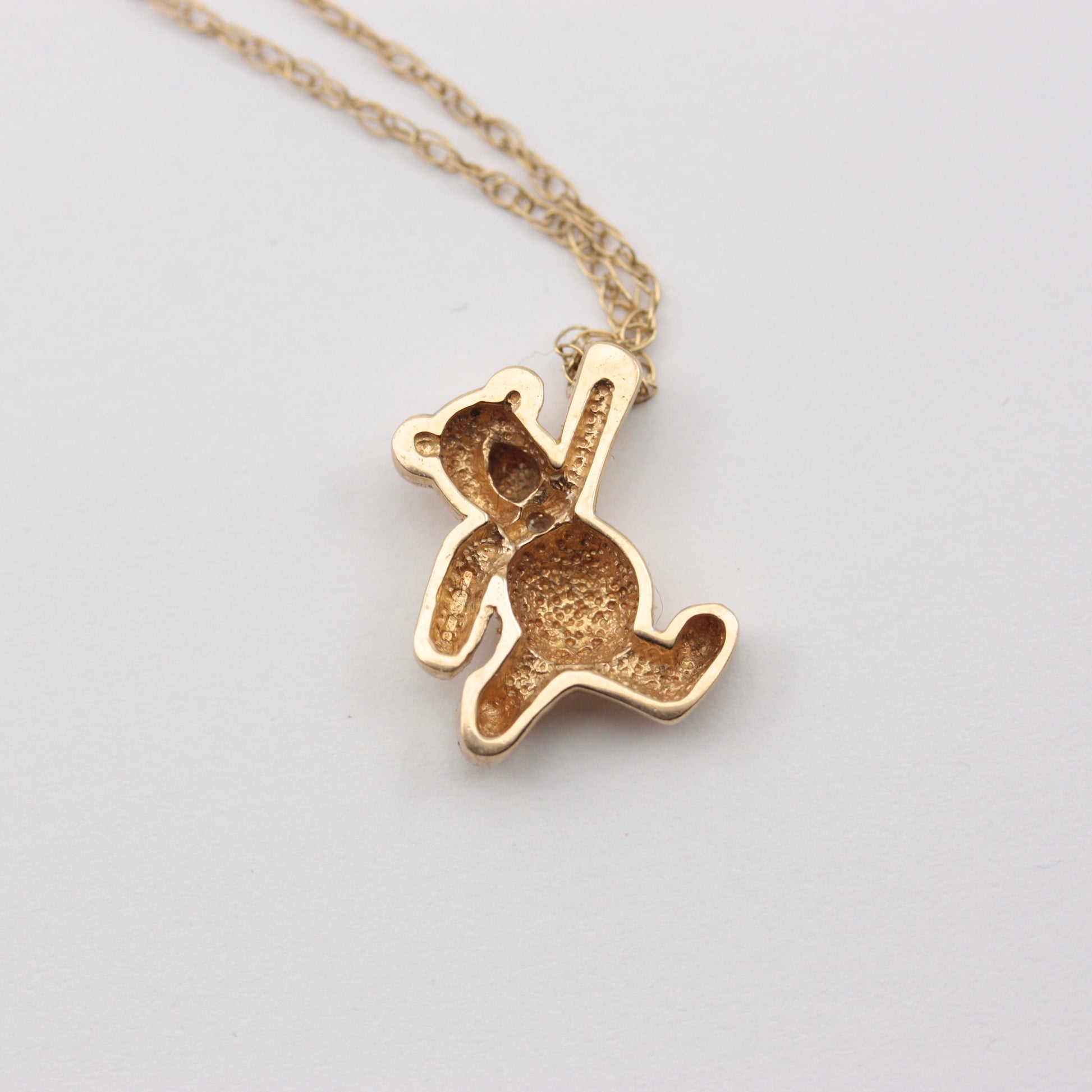 Vintage 9ct Gold Hanging Teddy Bear Pendant on Chain, c1990