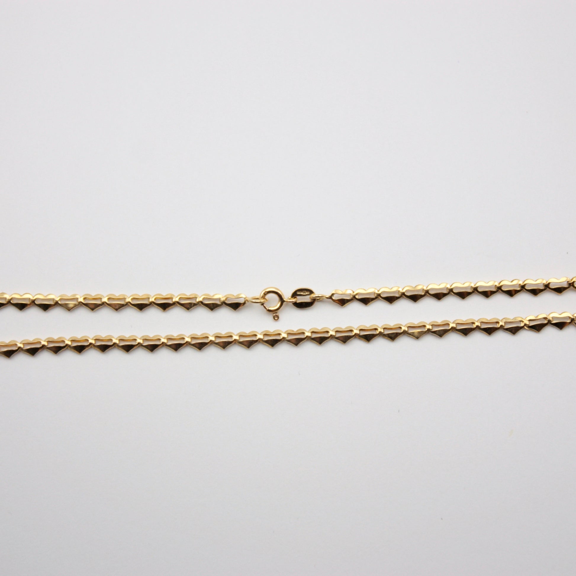 A lovely solid 9ct yellow gold chain necklace with the links in the design of little hearts.