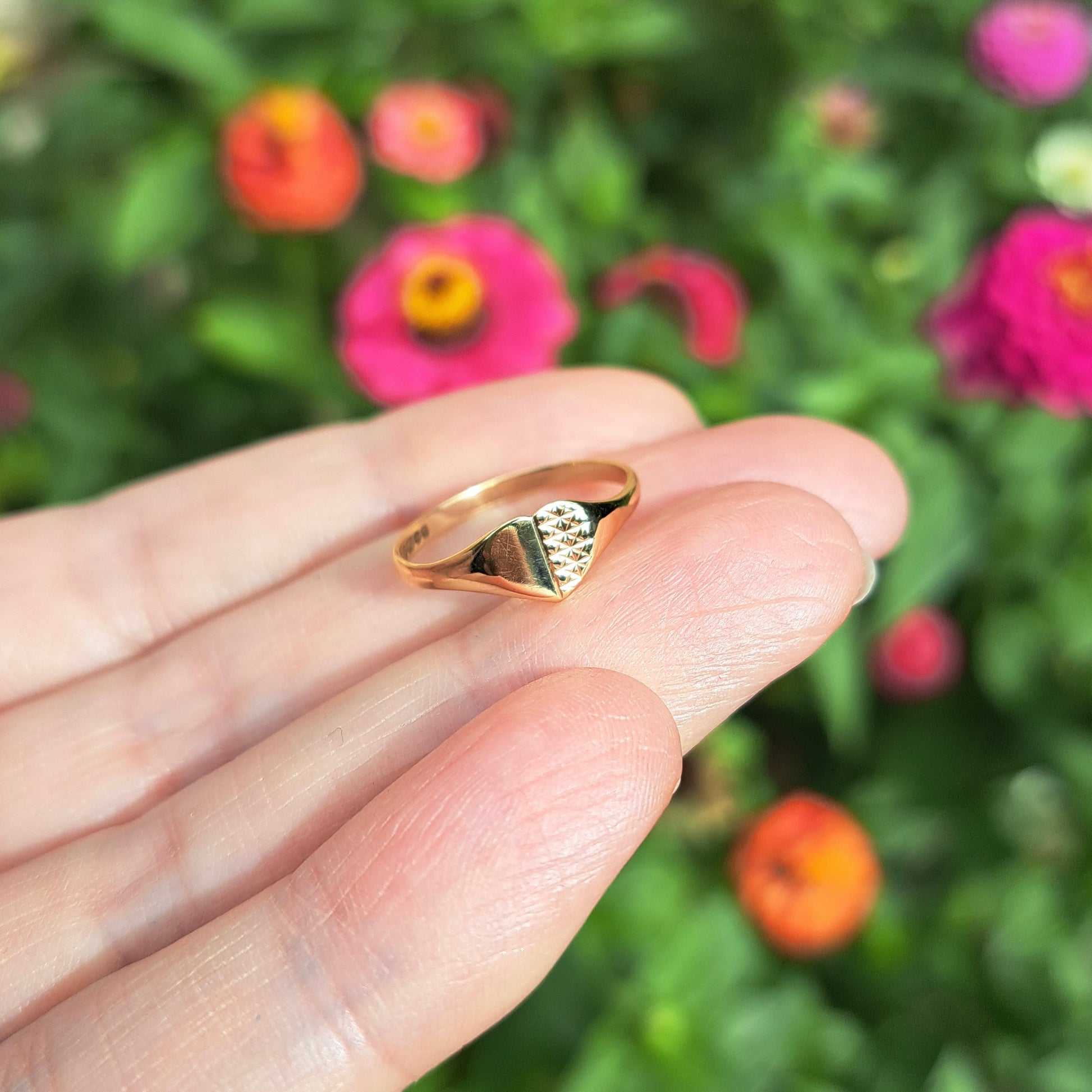 Vintage 9ct Gold Heart Signet Ring, 1983