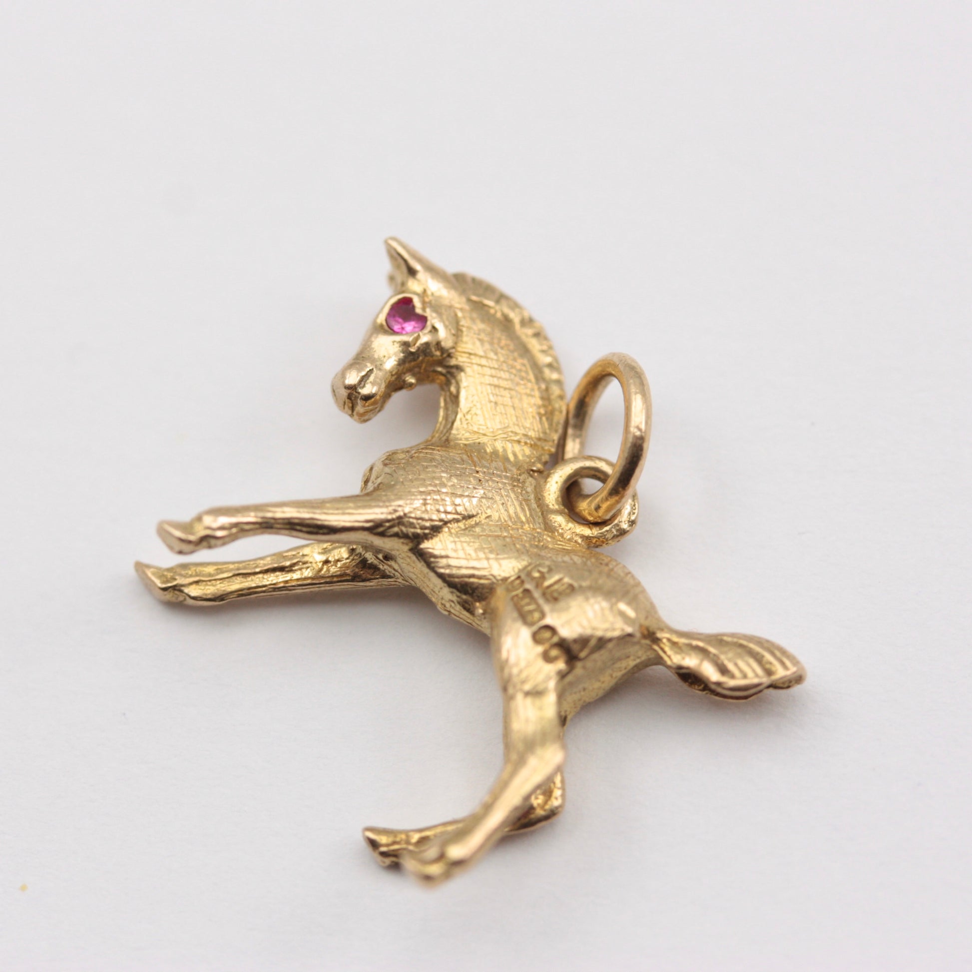 Vintage 9ct Gold Horse Charm with Ruby Eyes, GJLD, 1966
