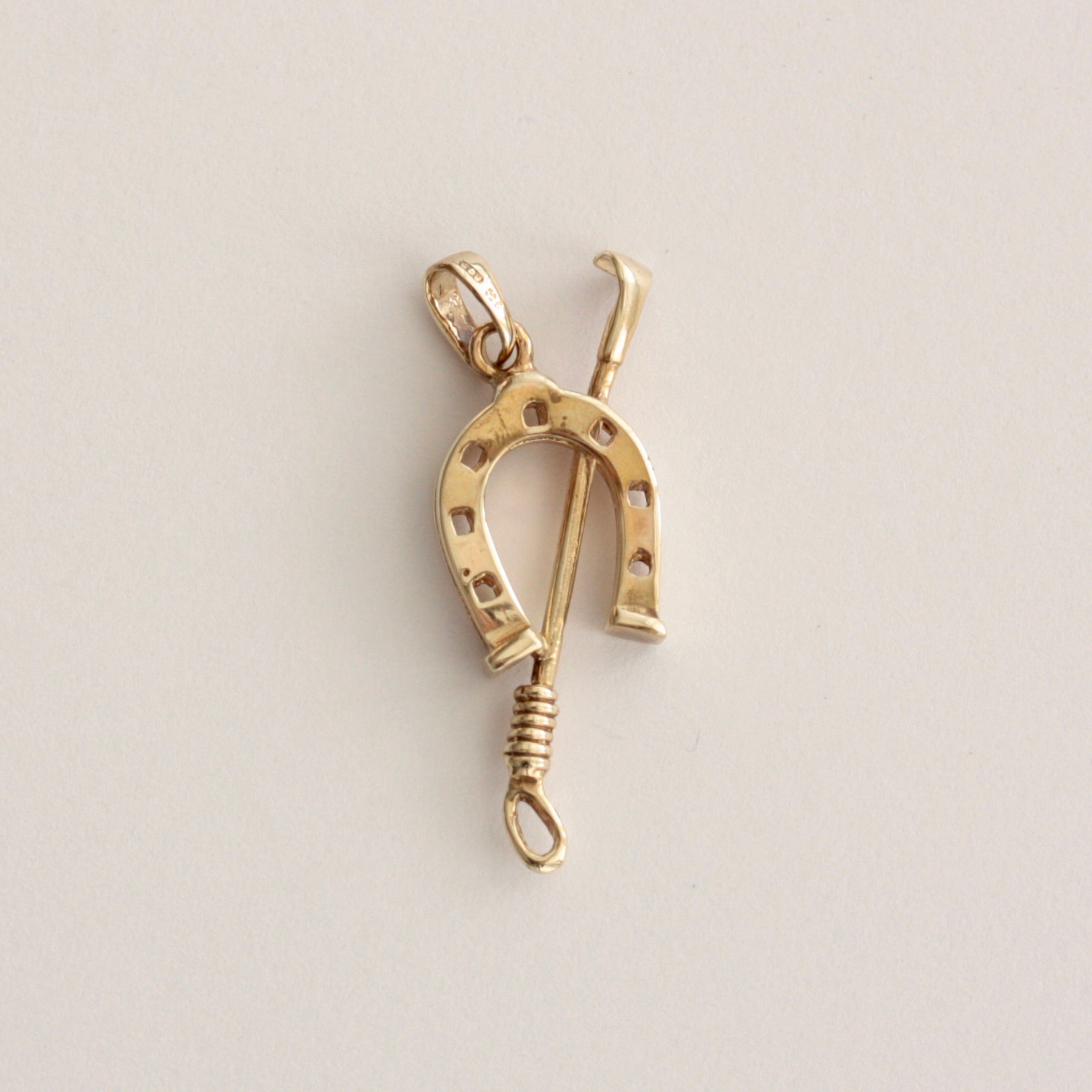 Vintage 9ct Gold Horseshoe and Riding Crop Pendant, 1988