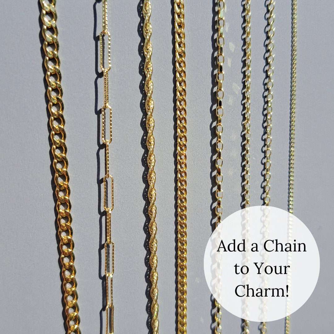Pictured with our 0.8mm wide belcher chain. View our full range of solid gold chains here