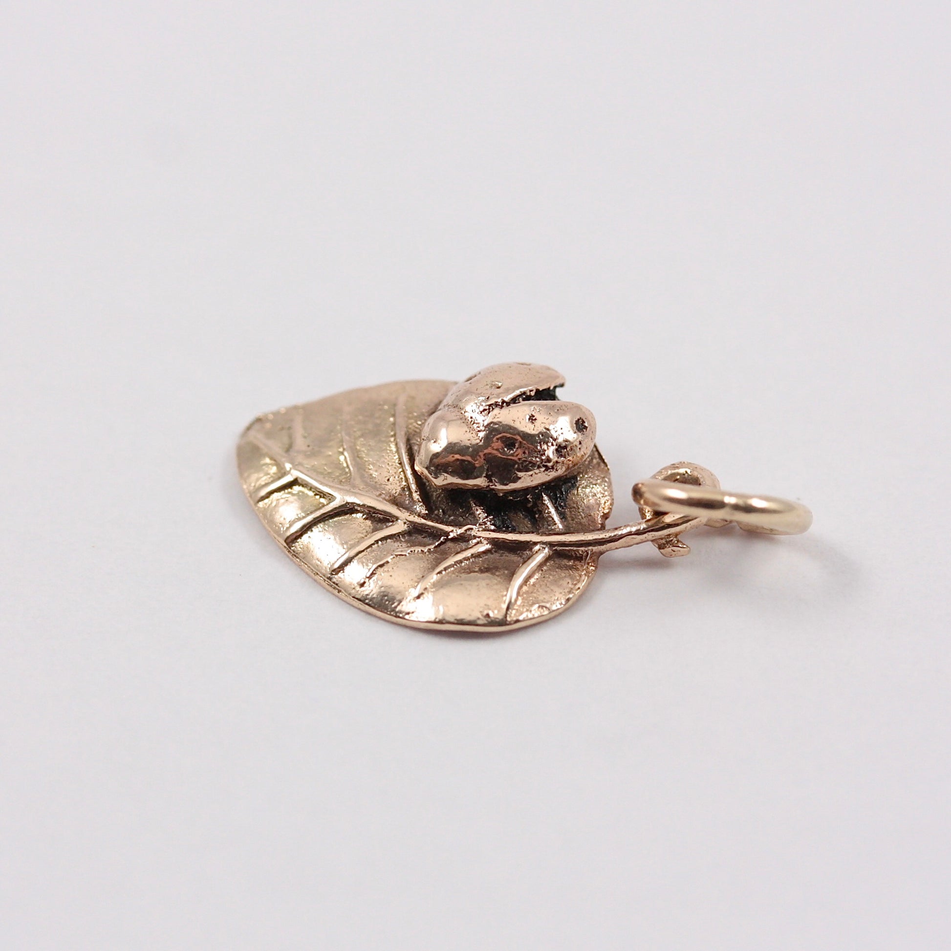 A super cute, solid 9ct yellow gold ladybird on leaf charm.