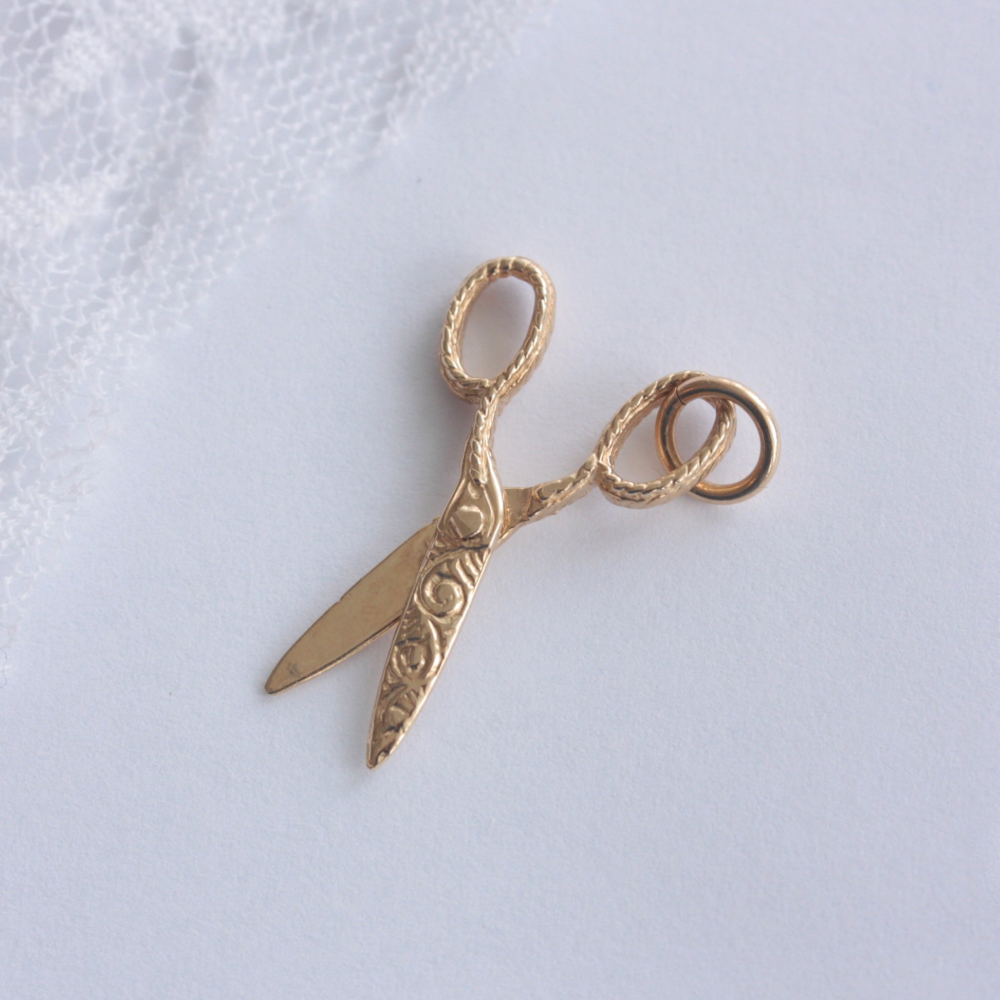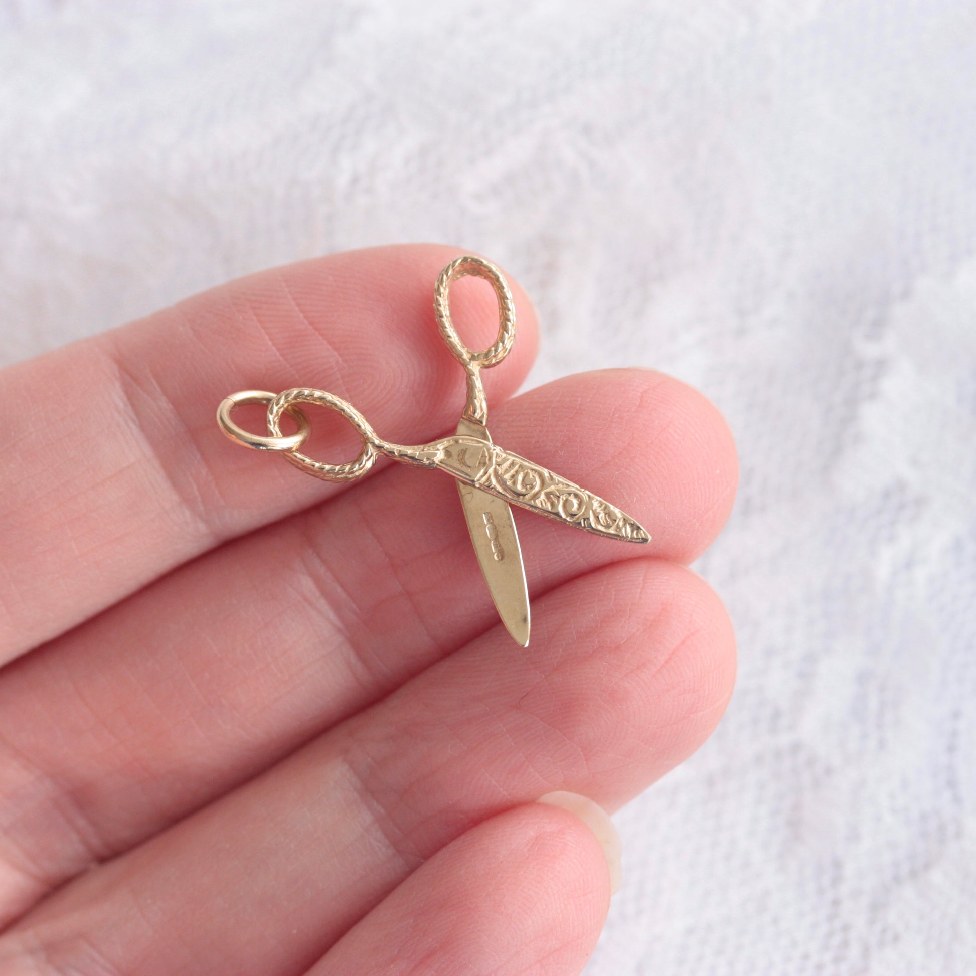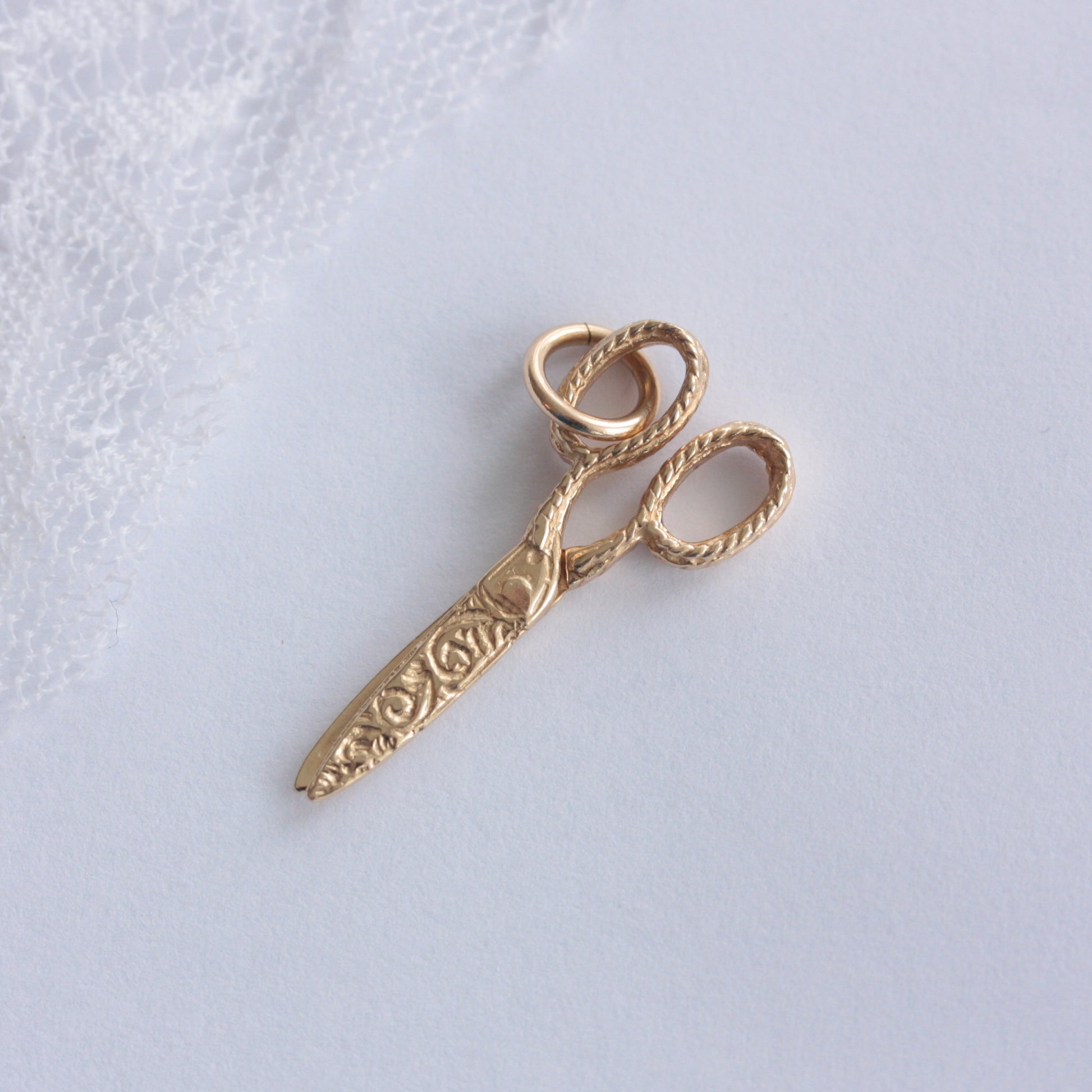 A really fun vintage 9ct yellow gold charm in the form of a pair of ornate scissors that open and close.
