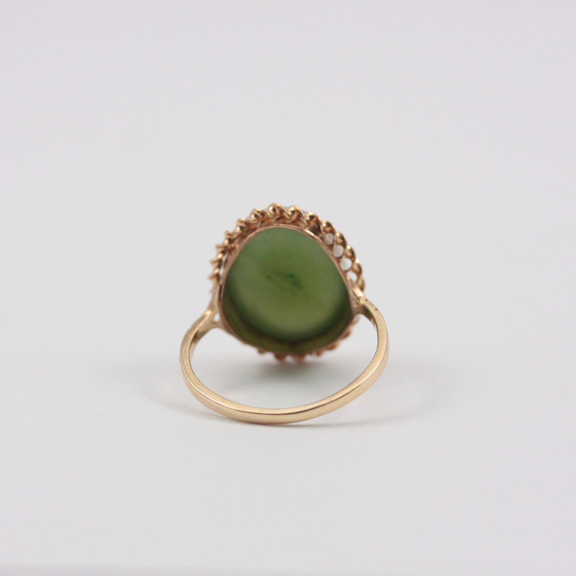 Vintage 9ct Gold Nephrite Jade Rope Frame Ring, 1990
