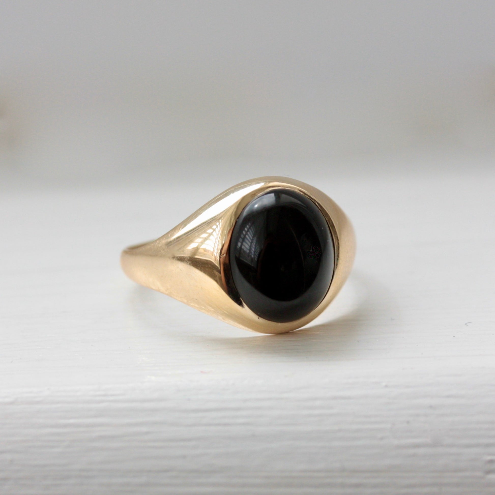 Vintage 9ct Gold Onyx Cabochon Signet Ring