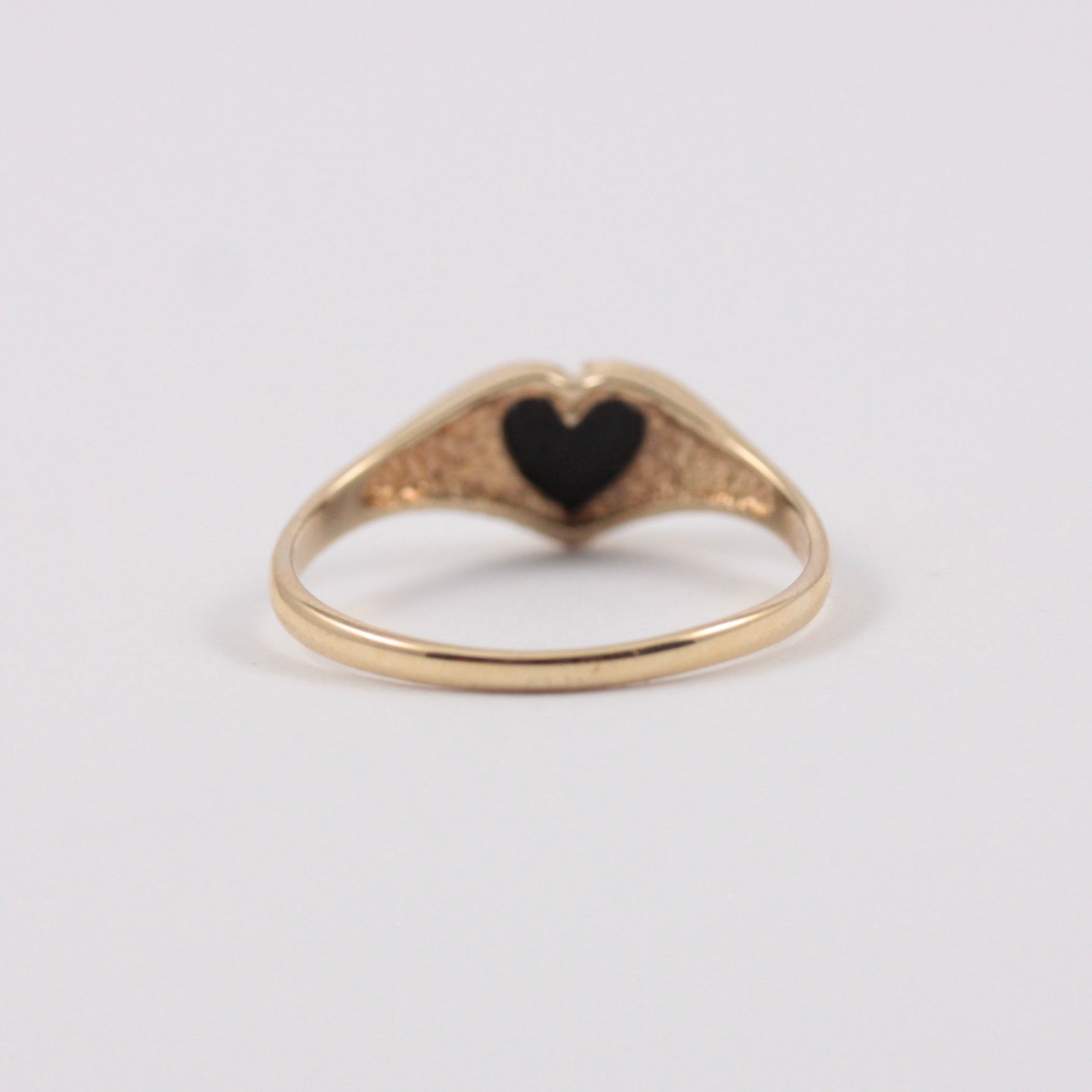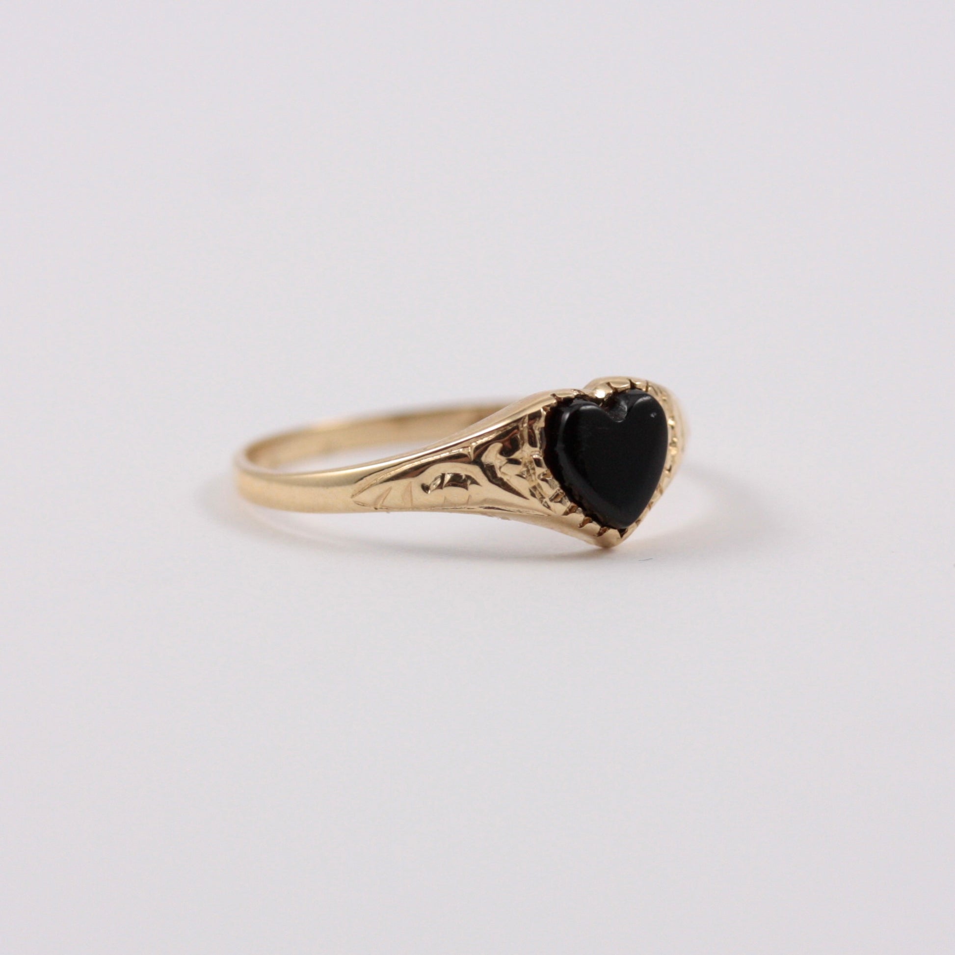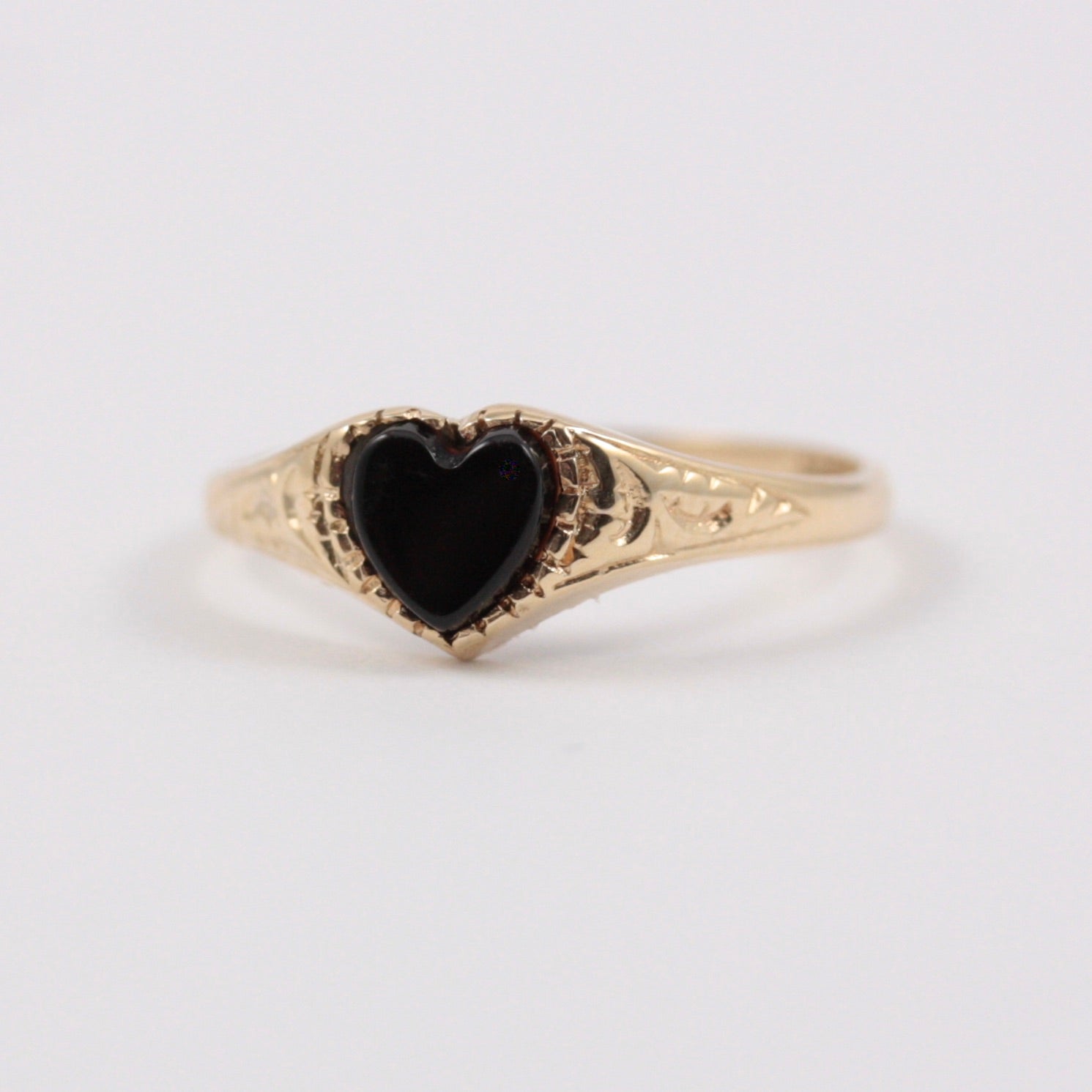 A dainty vintage 9ct gold and black onyx heart signet ring.