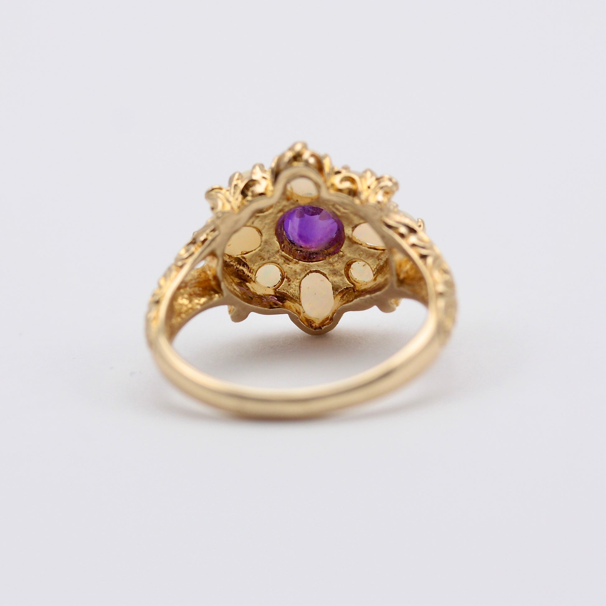 Vintage 9ct Gold Opal and Amethyst Cluster Ring, 1975