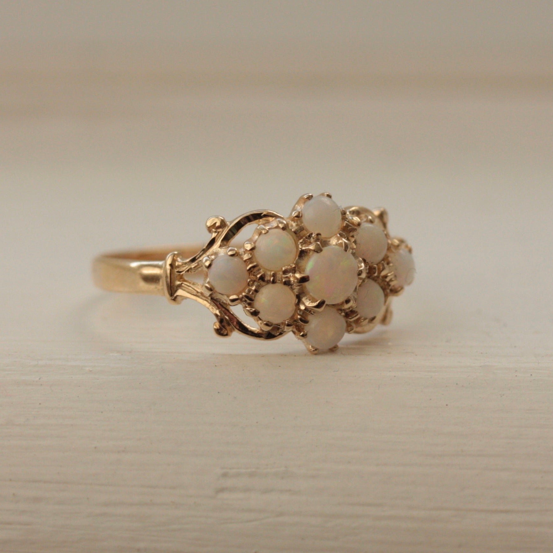 Vintage 9ct Gold Opal Cluster Ring, 1988