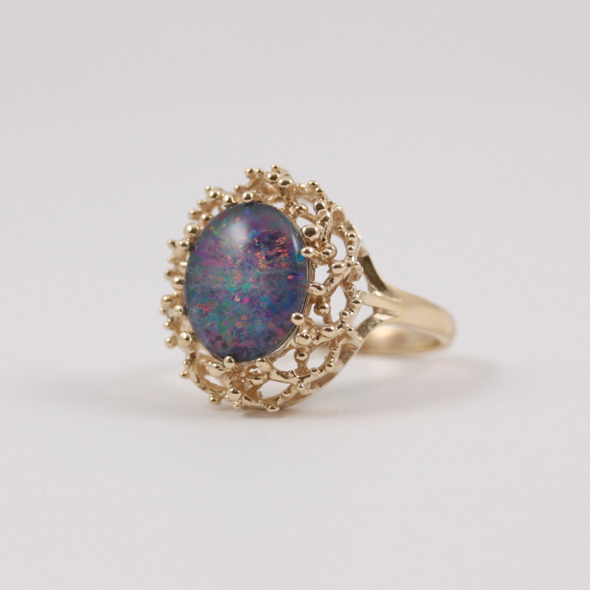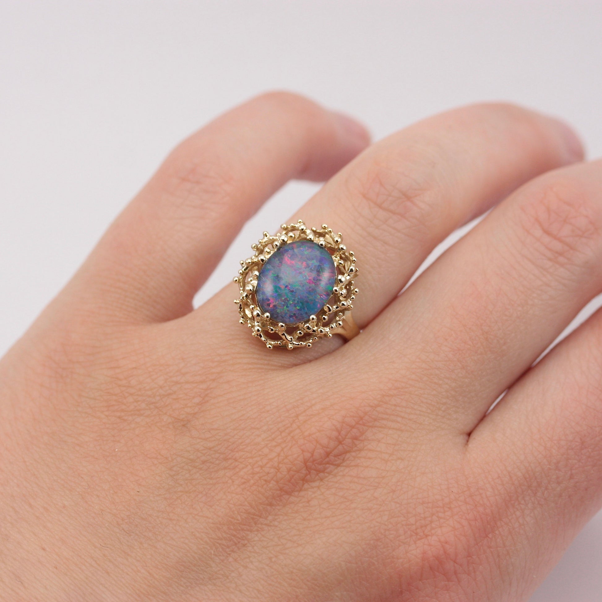 Vintage 9ct Gold Opal Triplet Statement Ring, 1976