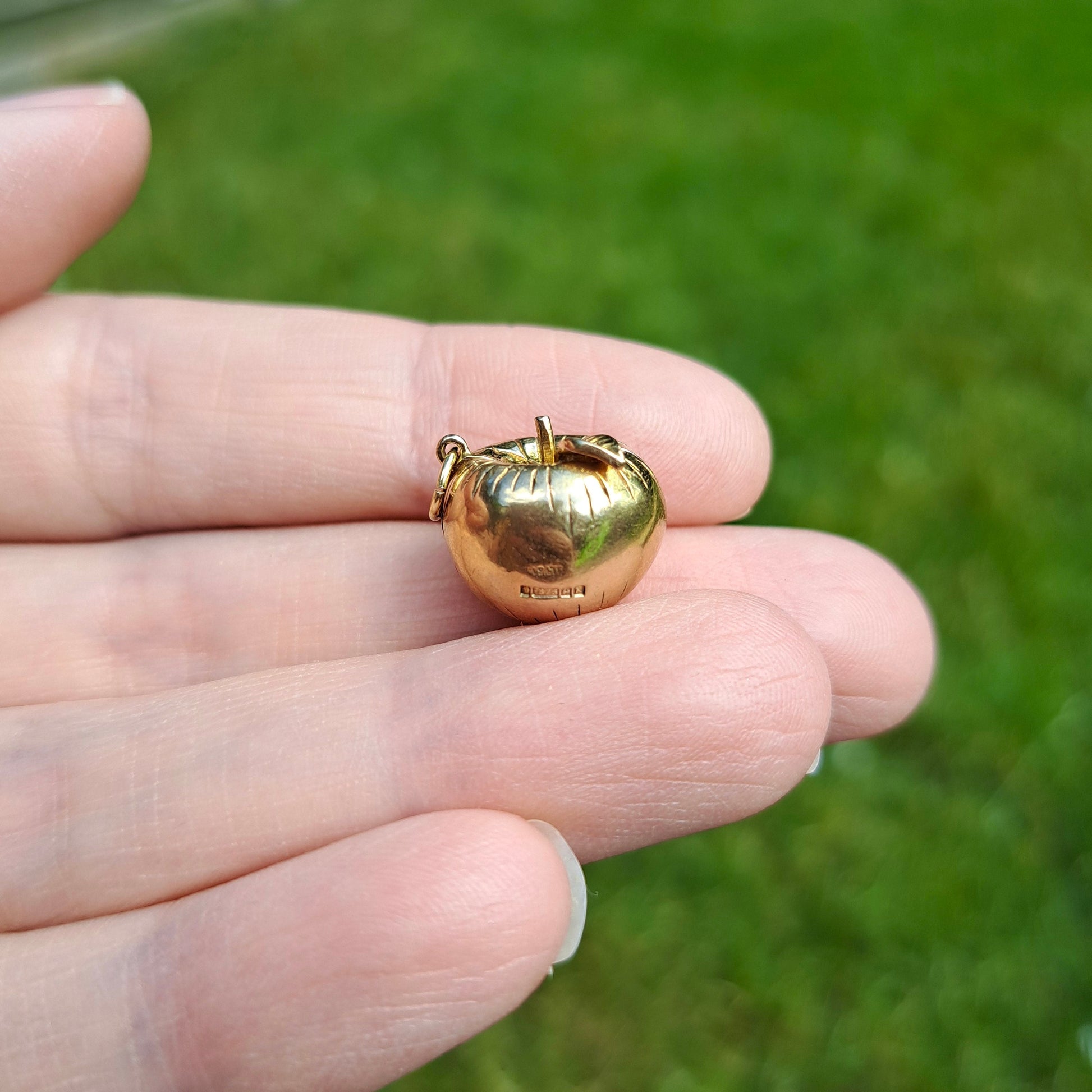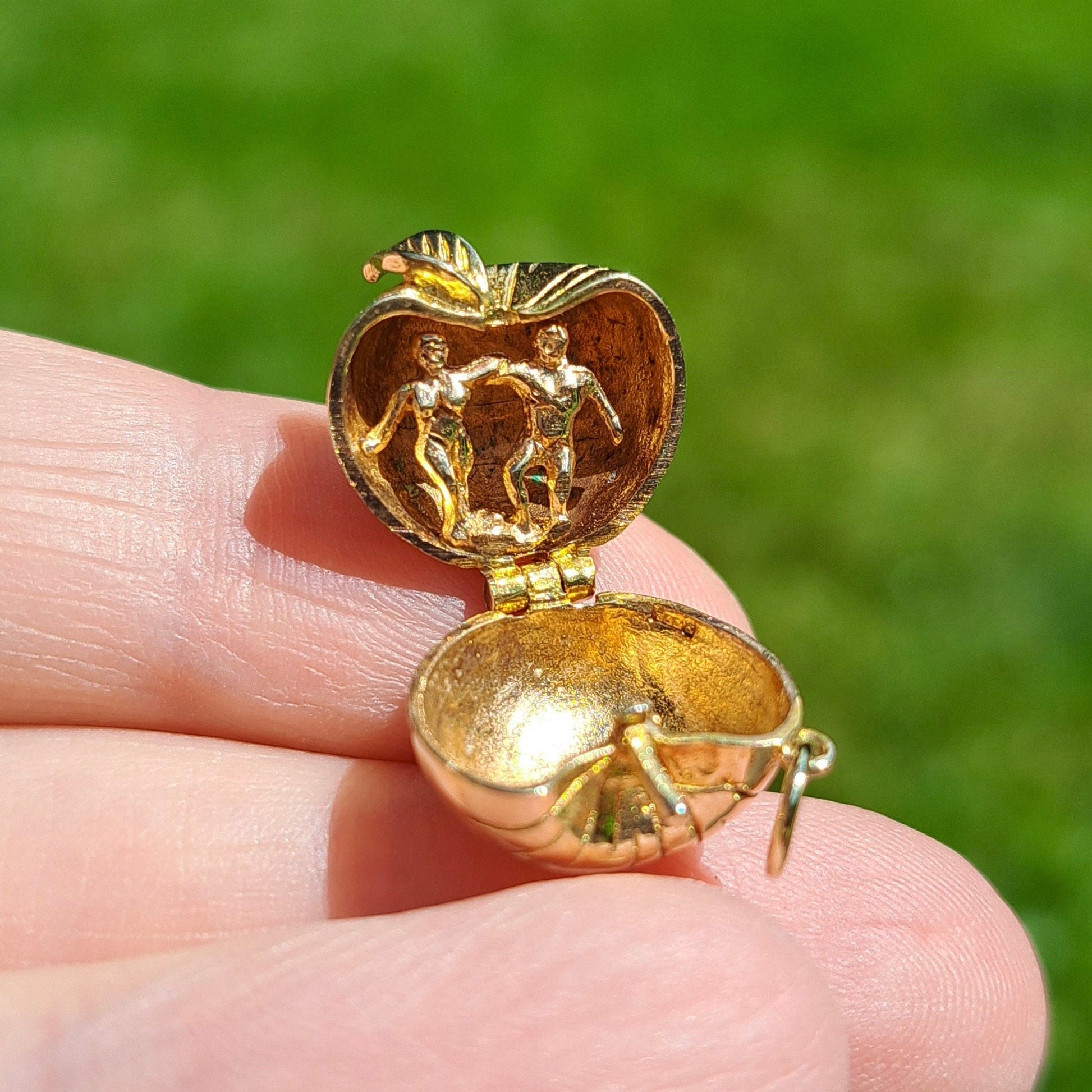 Vintage 9ct Gold Opening Apple Charm with Adam and Eve Inside, 1959