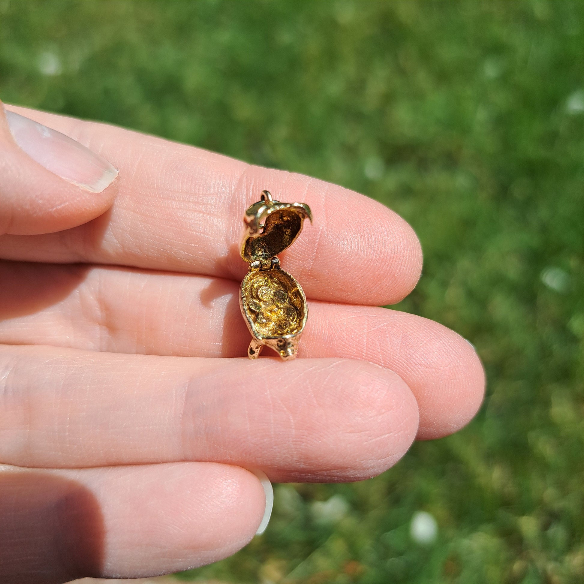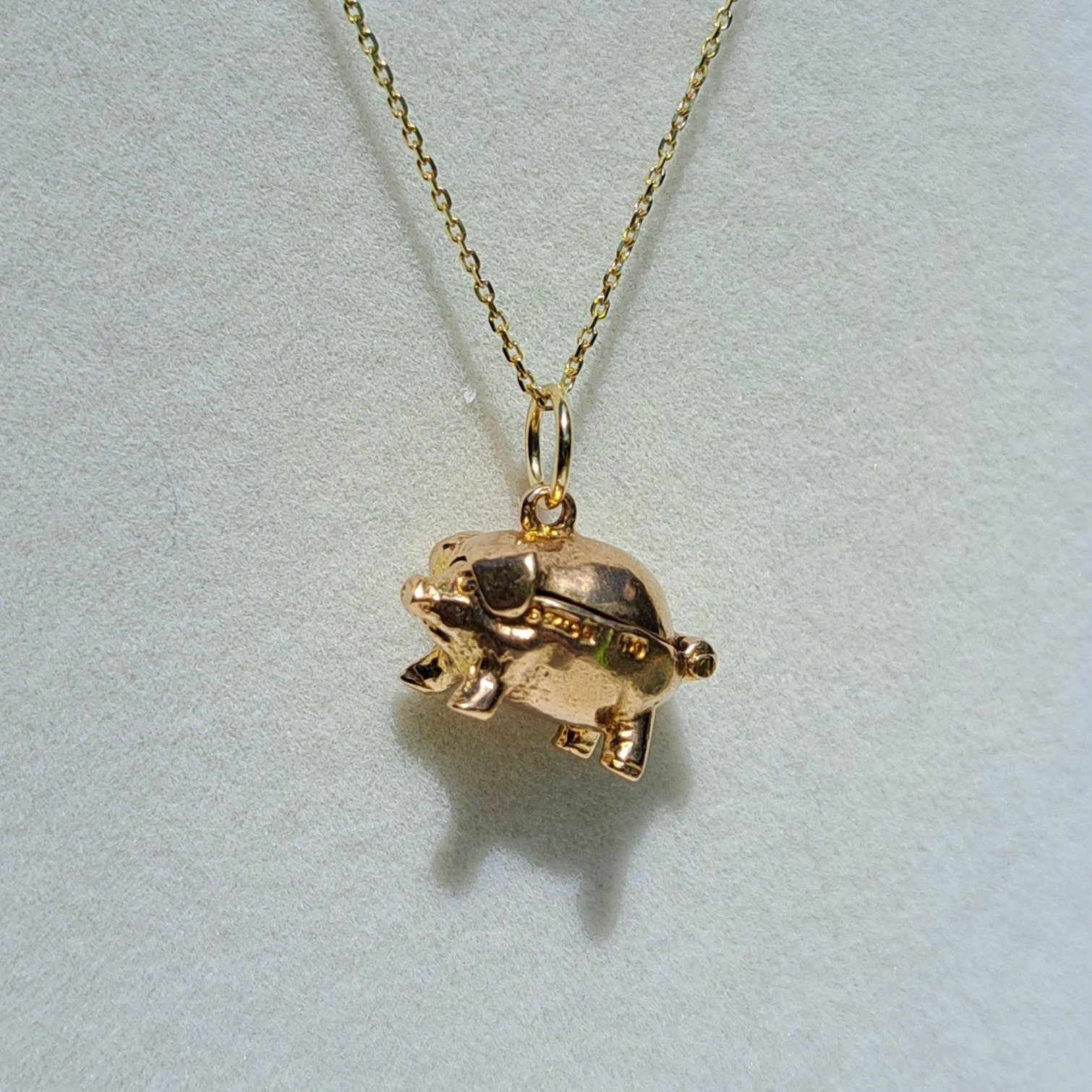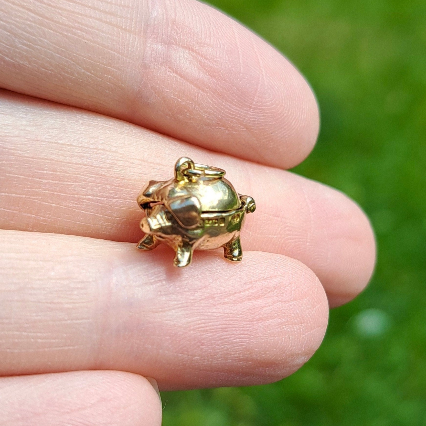 Vintage 9ct Gold Opening Piggy Bank Charm with Coins Inside, 1959
