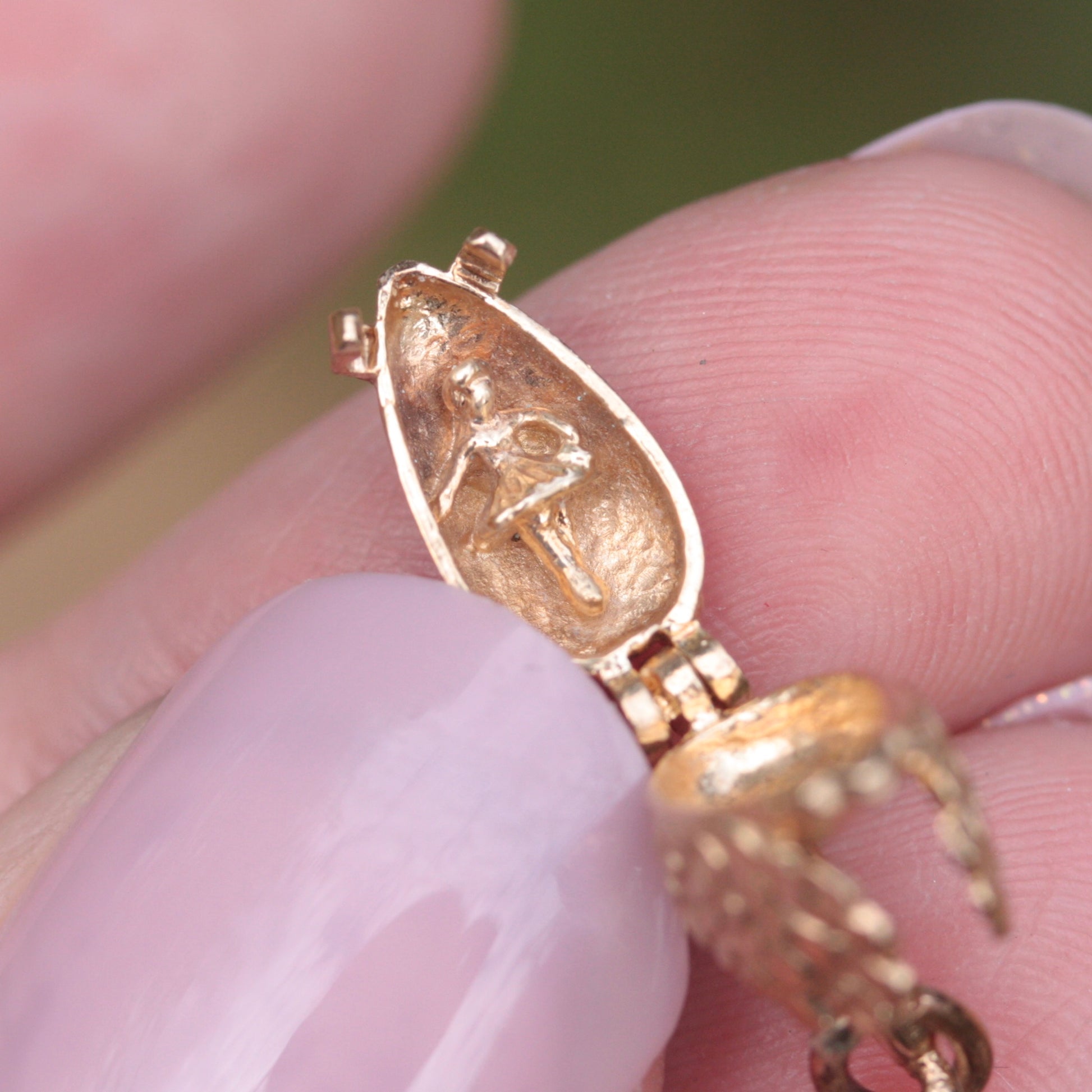 A 9ct gold vintage swan charm which opens to reveal a ballerina inside.