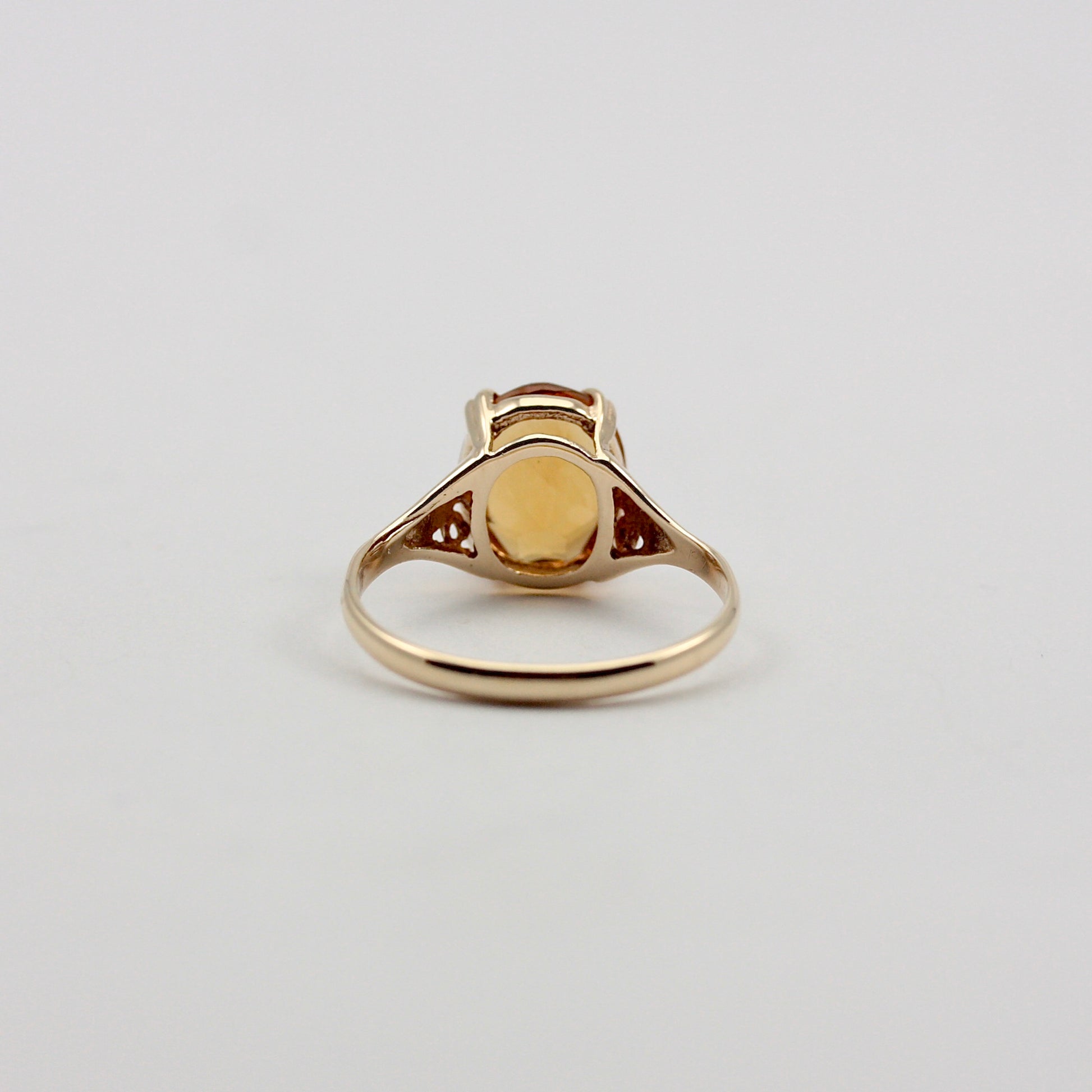 Vintage 9ct Gold Oval Citrine Solitaire Ring, 1969