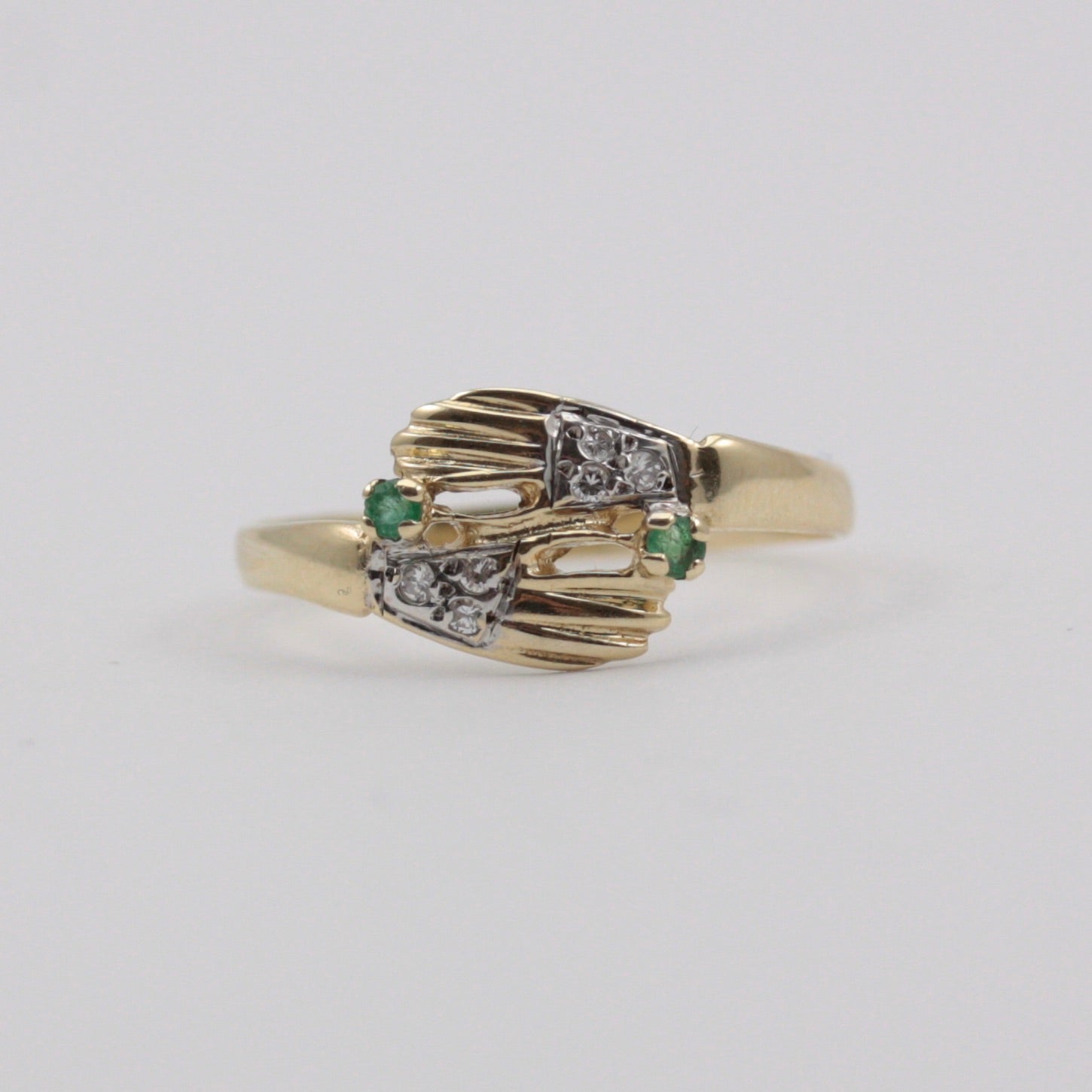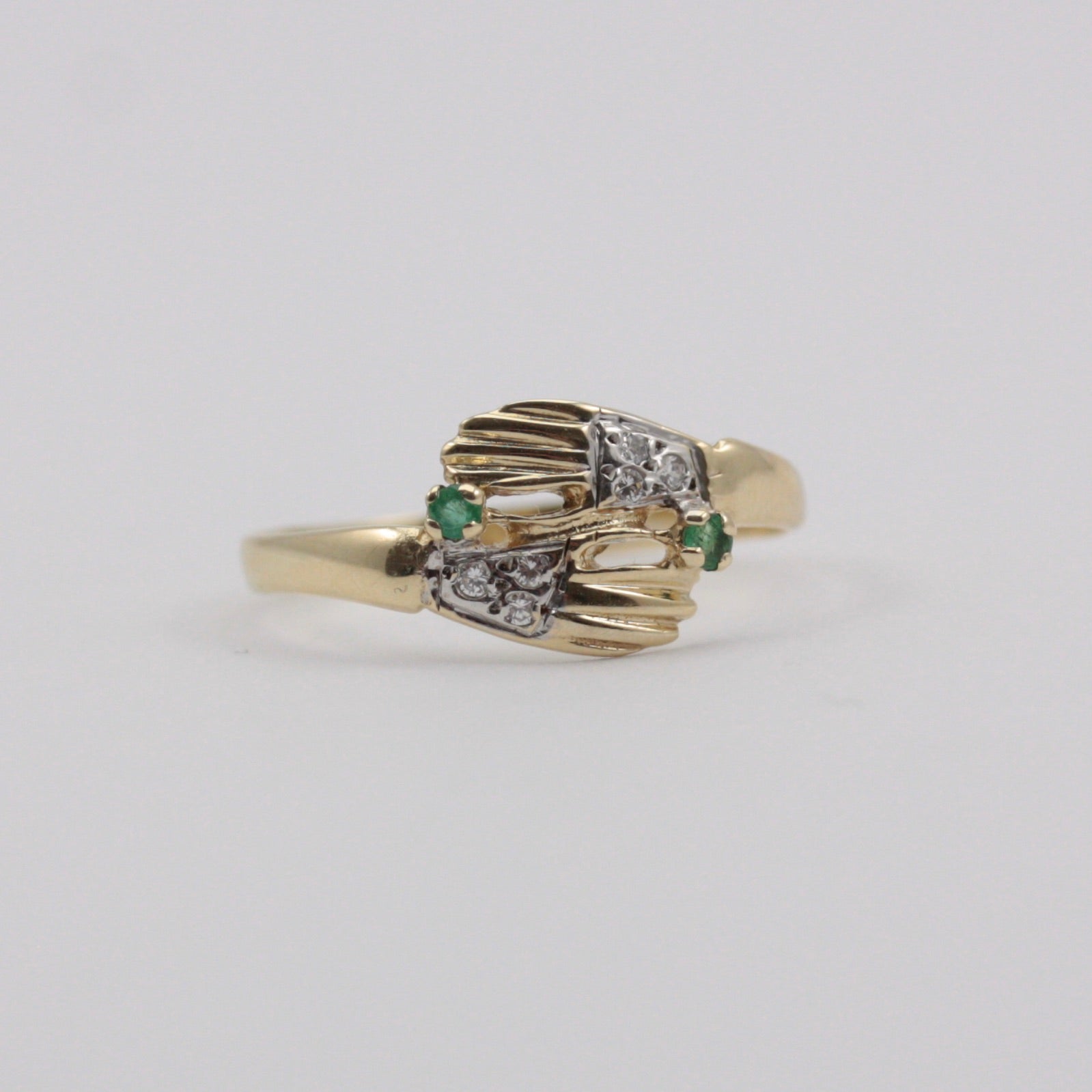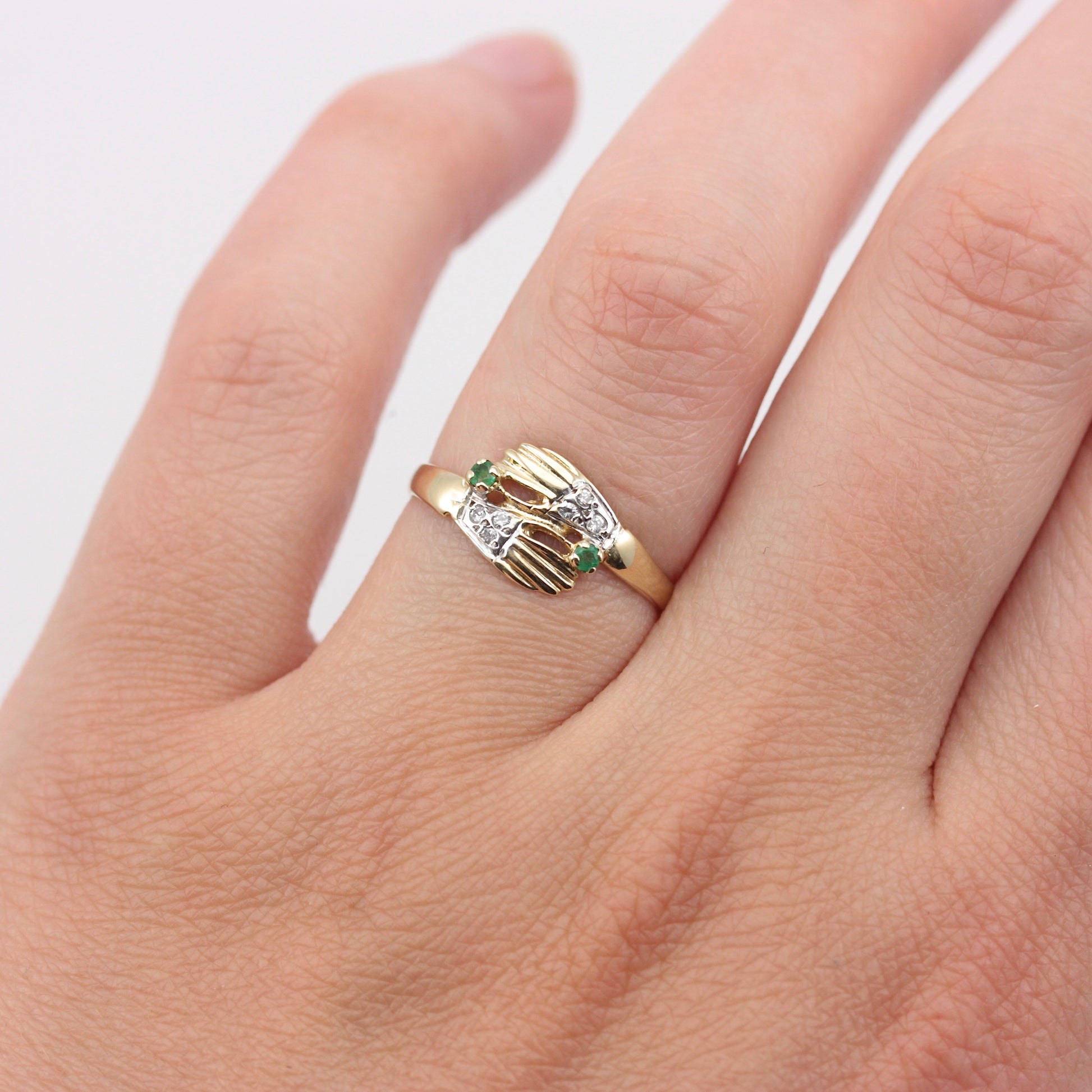 Vintage 9ct Gold Pair of Hands Ring with Diamonds and Emeralds