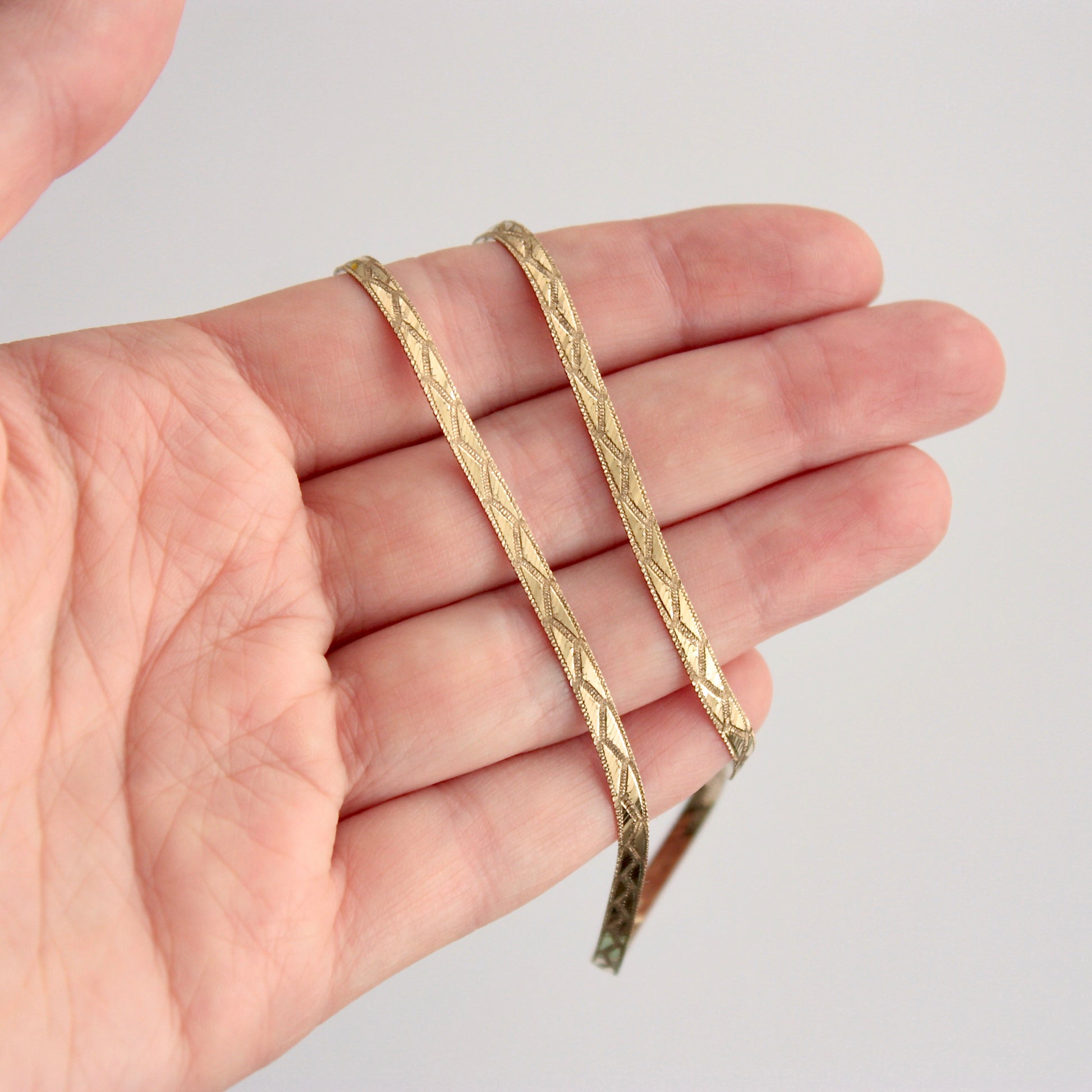 Vintage 9ct Gold Pattered Herringbone Necklace, 1988