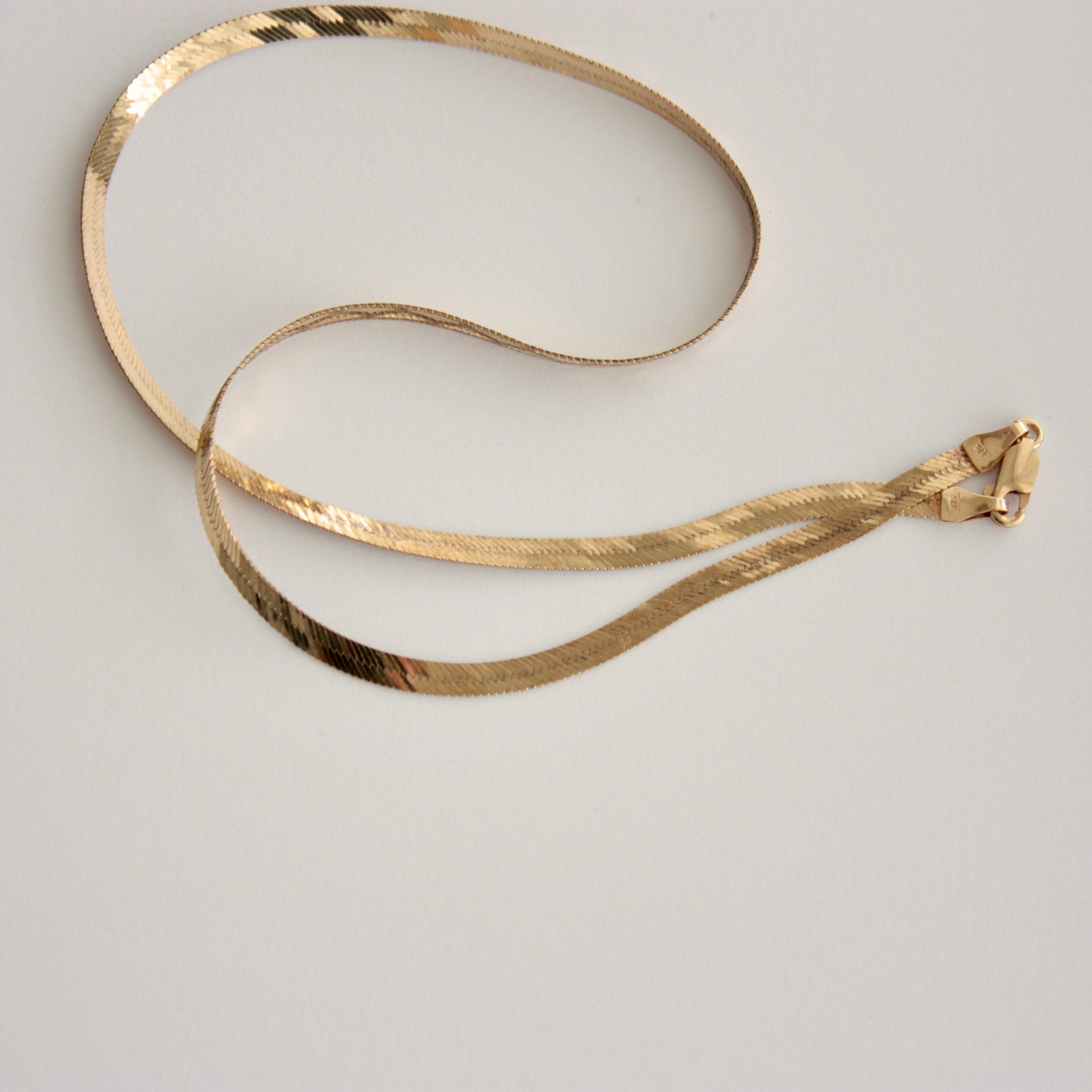 A solid 9ct yellow gold herringbone necklace, patterned to one side and with a high shine to the other. Can be worn both ways.